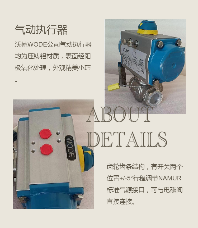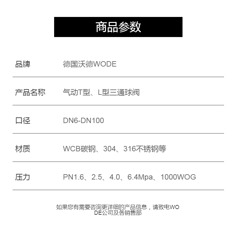 德国沃德WODE进口气动三通球阀有T型和L型。T型能使三条正交的管道相互联通和切断第三条通道,起分流、合流作用。L三通球阀型只能连接相互正交的两条管道,不能同时保持第三条管道的相互连通,只起分配作用。
