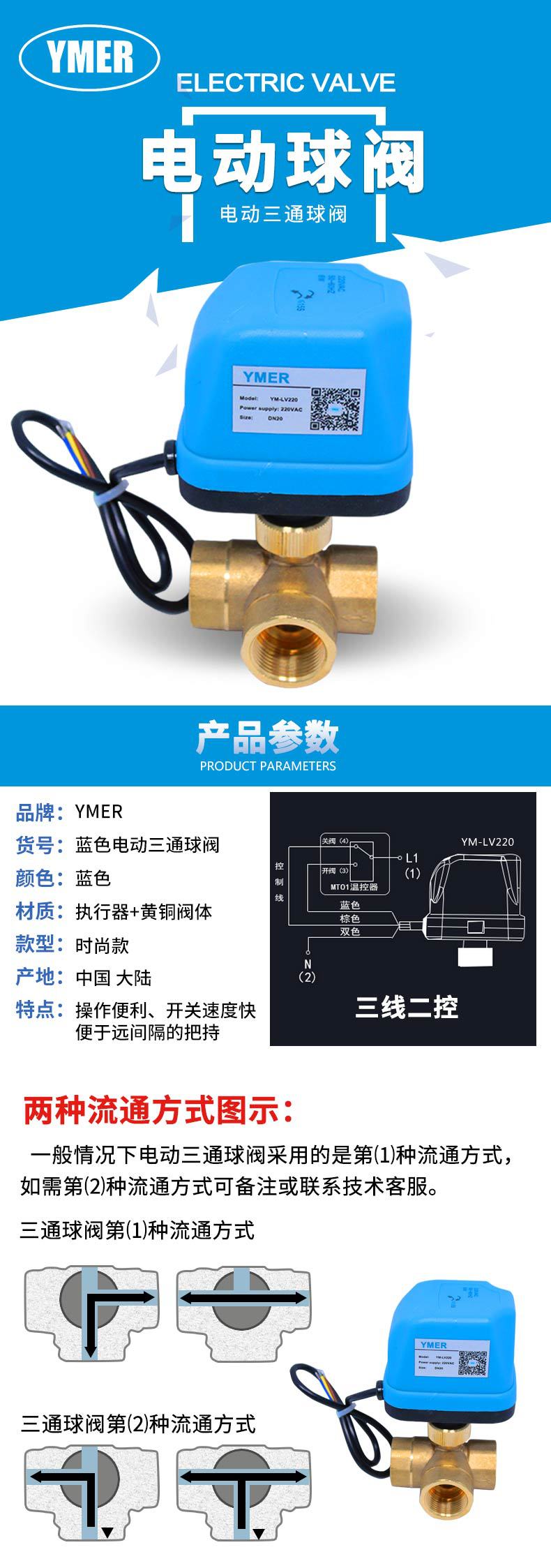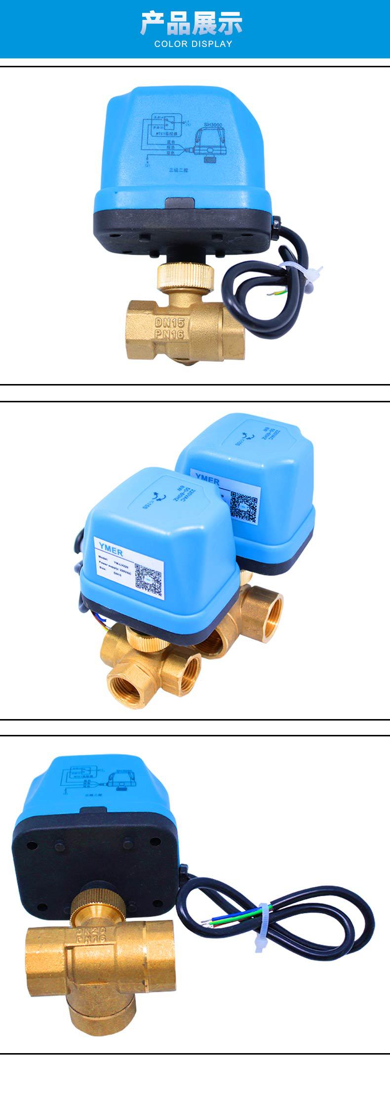 三线二控电动三通球阀 DN15 20 25中央空调风机盘管开关型三通阀