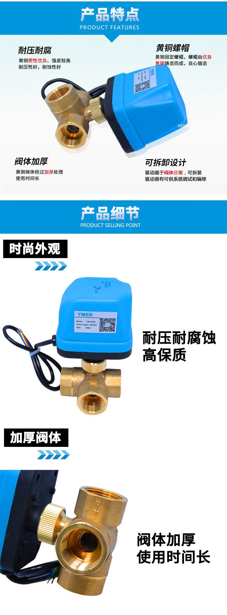 YMER 内螺纹黄铜电动球阀 丝扣空调风机盘管电动二通阀 YM-BV2011