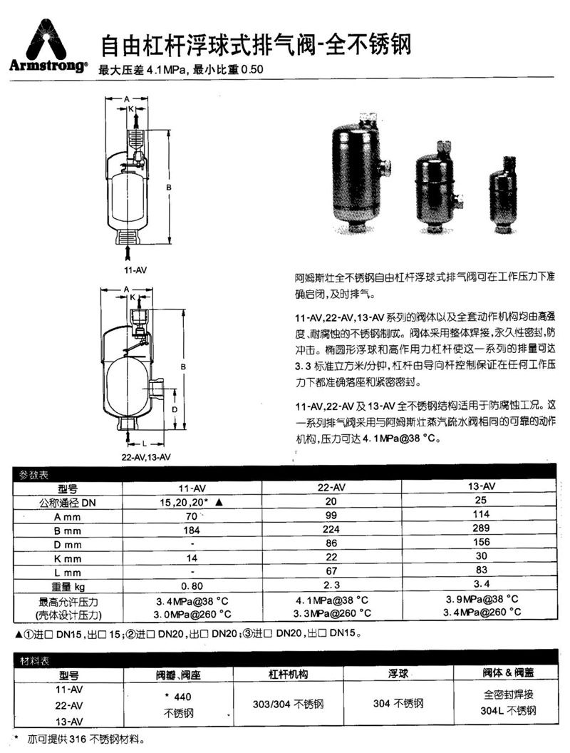 Armstro产品与ng阿姆斯壮自由杠杆浮球式不锈钢排气阀 13-排气阀产品与参数图: