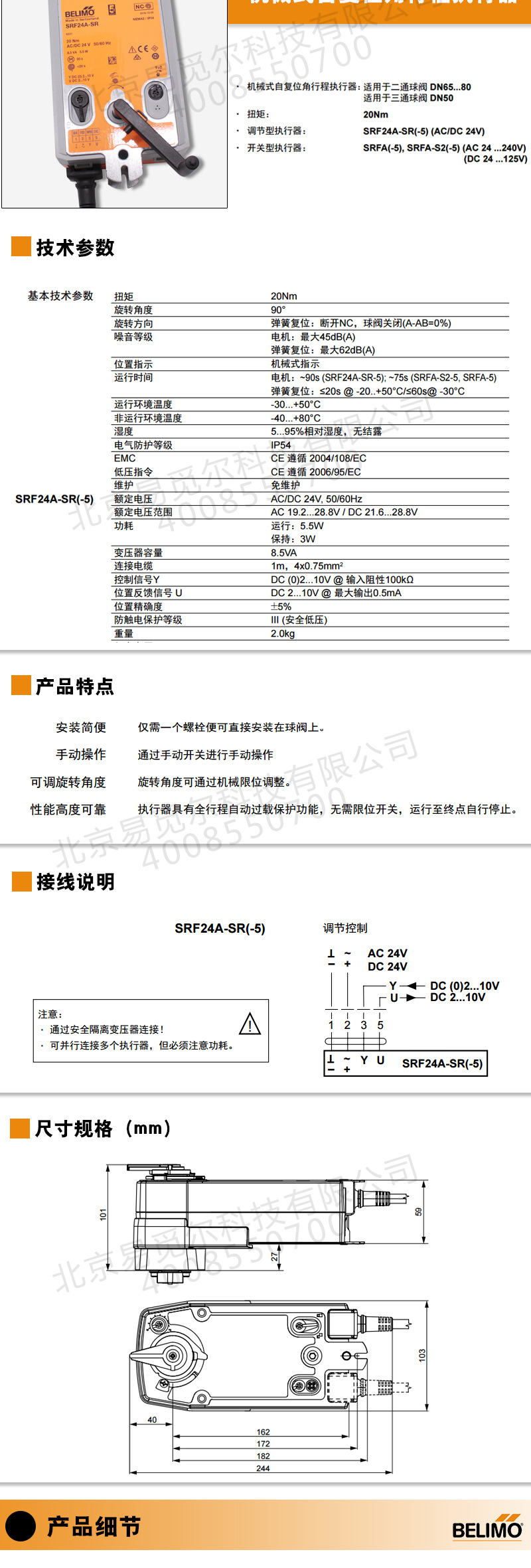 SRF24A-SR系列机械式自复位角行程执行器:扭矩: 20Nm ·