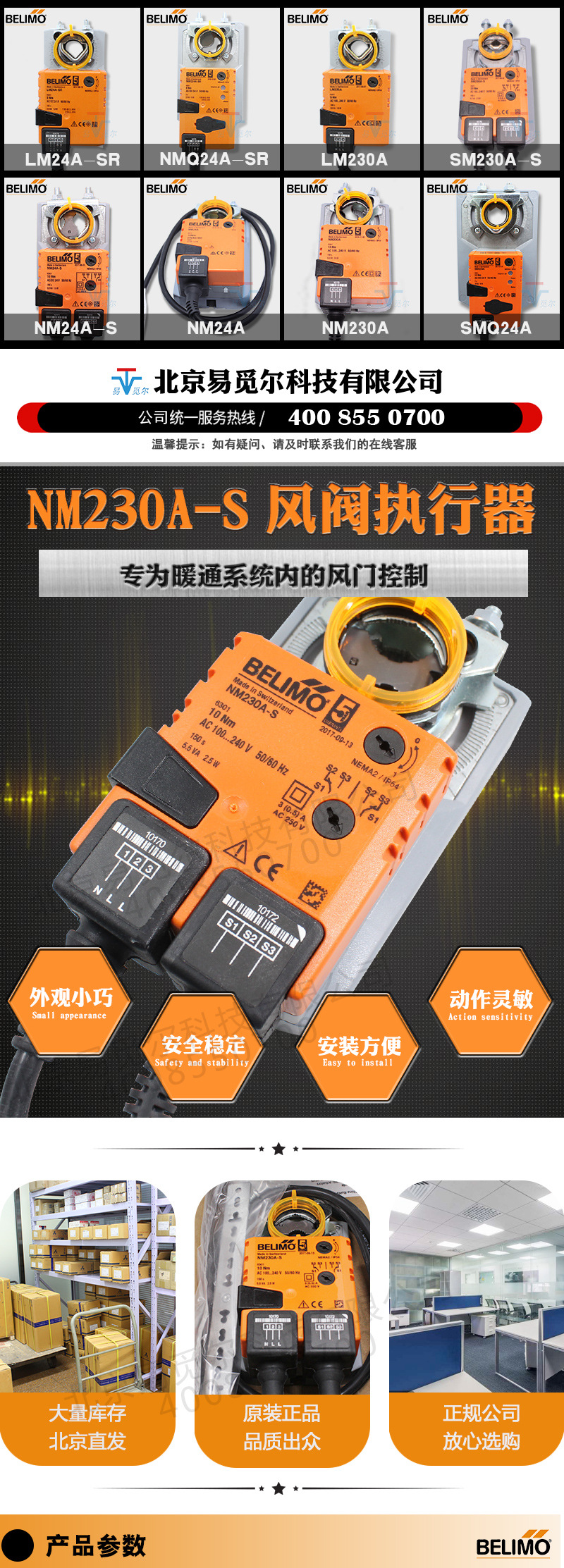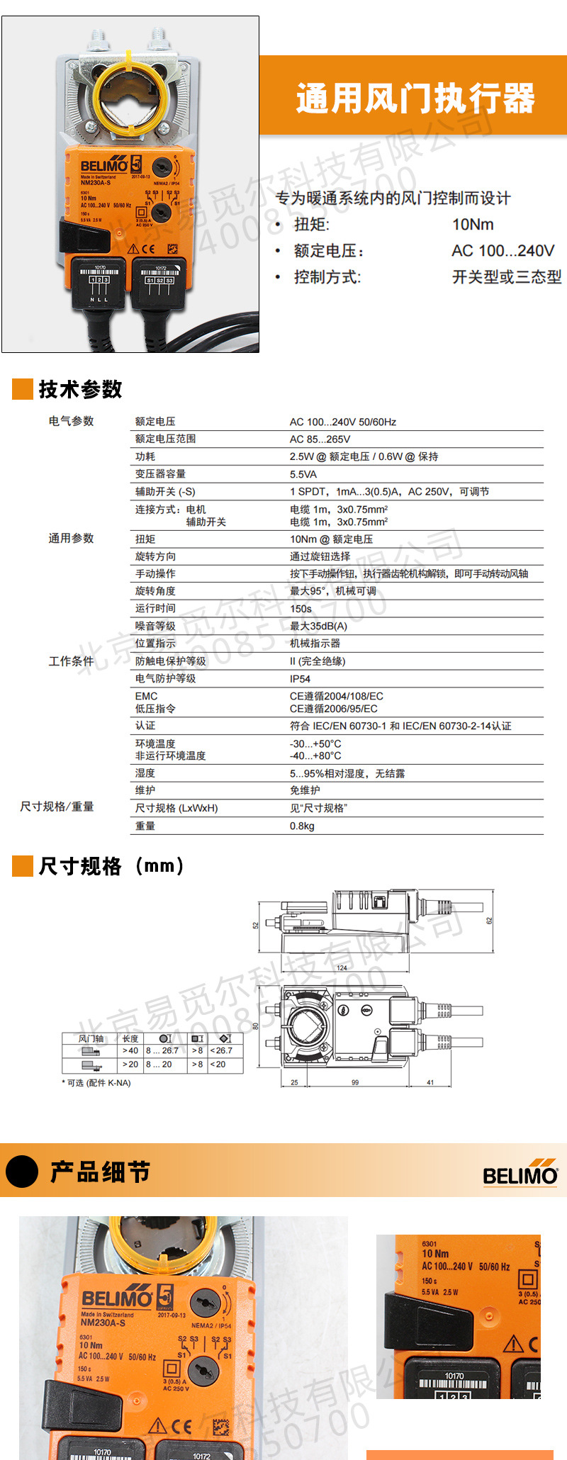 博力谋电动风门执行器NM230A-S 开关型AC220V带辅助开关