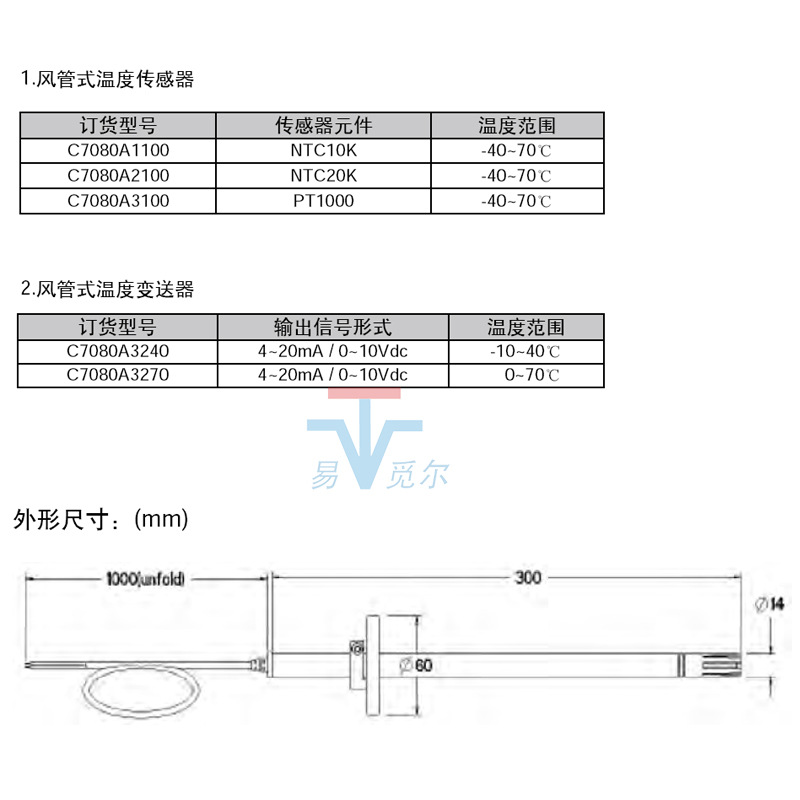 HONEYWEII霍尼韦尔 C7080系列风管温度及变送器专为工业、