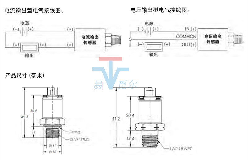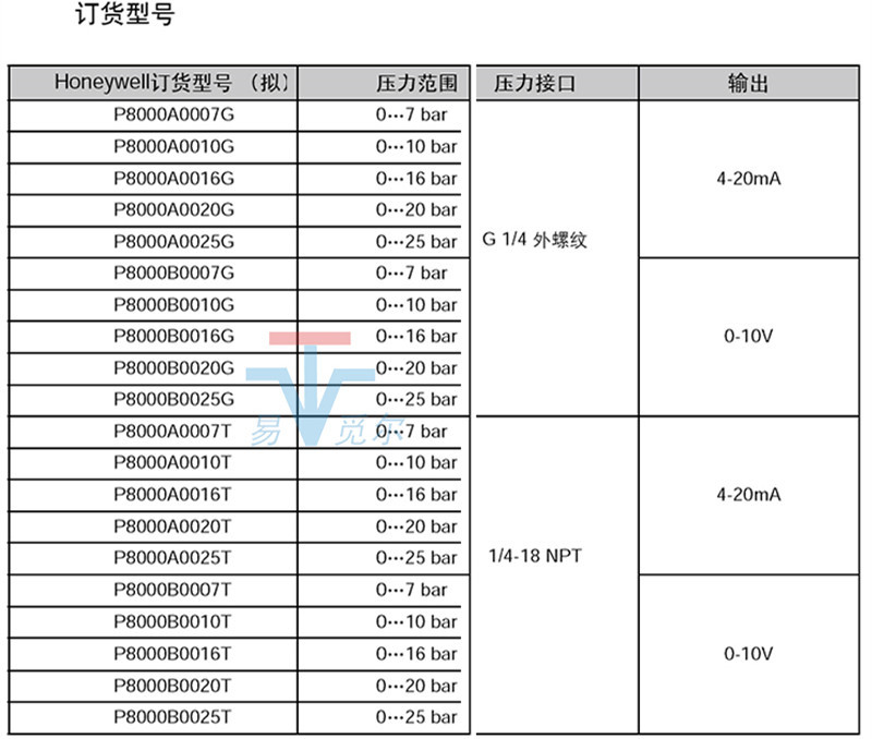 HONEYWEII 霍尼韦尔 P8 0 0 0 系列压力传感器产品与型号接线图:
