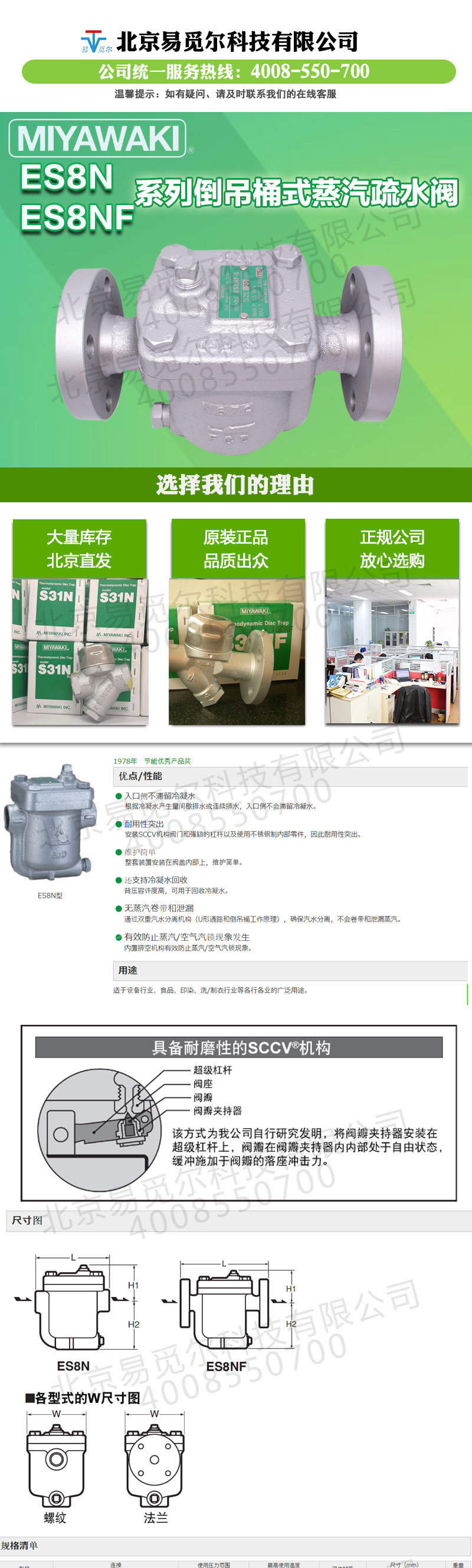 日本MIYAWAKI宫胁蒸汽疏水阀 ES8N-8 ES8N-5 ES8N-16倒吊桶疏水器