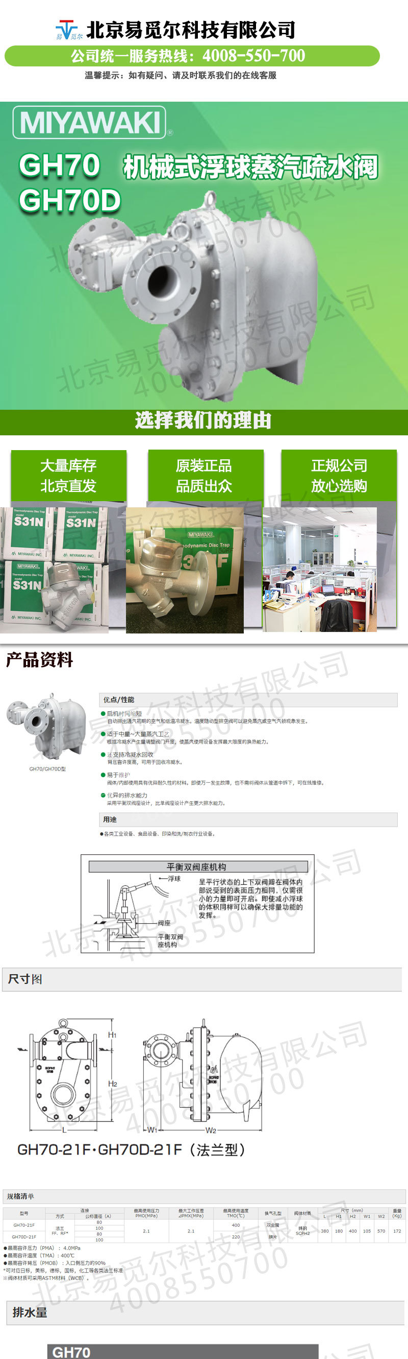 日本MIYAWAKI宫胁疏水阀 GH70-21F/GH70D-21F 铸钢法兰疏水阀