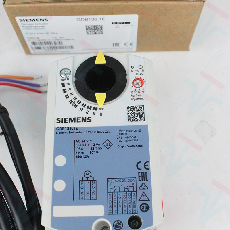 德国西门子GDB136.1E是调节型风门执行器,无弹簧复位功能,0-90度动作时间150s,扭矩是5NM,驱动风阀面积大约0.8㎡。
