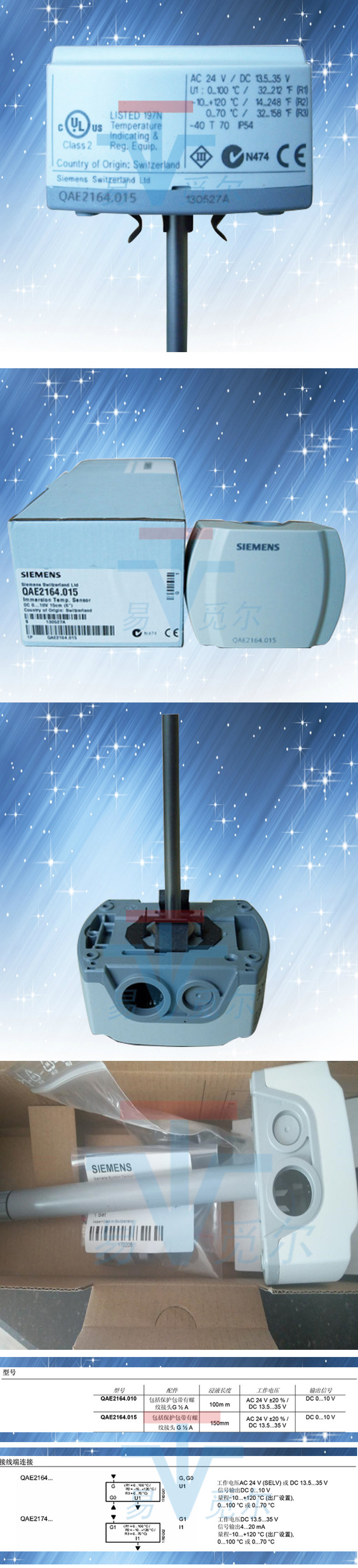 QAE2164.015侵入式温度传感器,有源输出