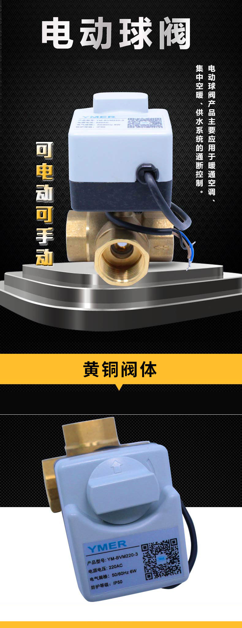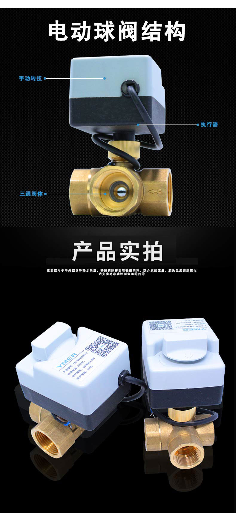 YMER 内螺纹黄铜电动球阀 丝扣空调风机盘管电动二通阀 YM-BV2011