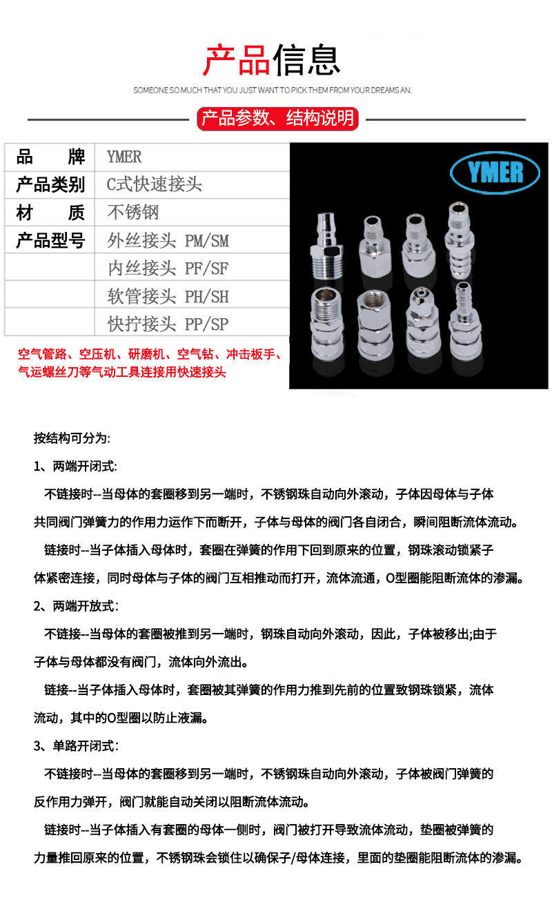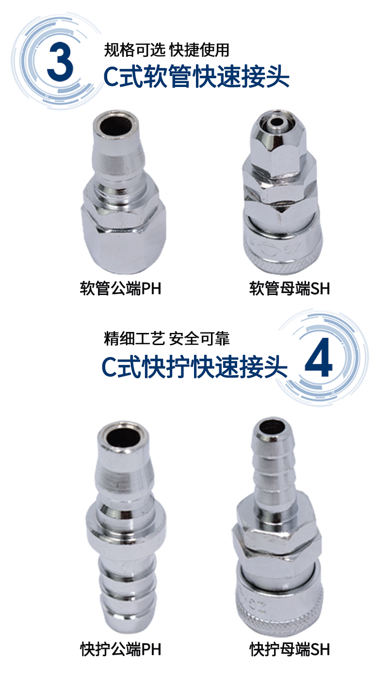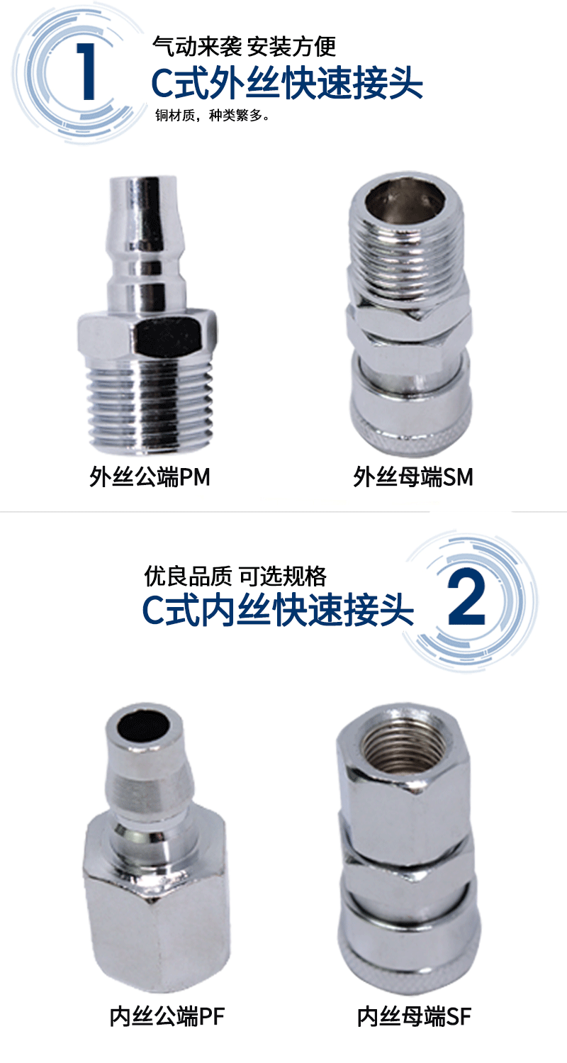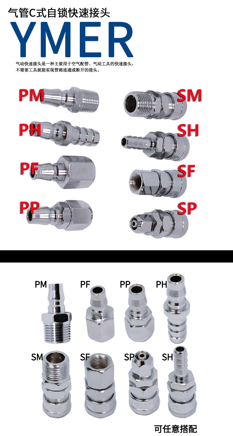 YMER C式气动快速接头自锁氧气管空压机气泵配件工具接头软管