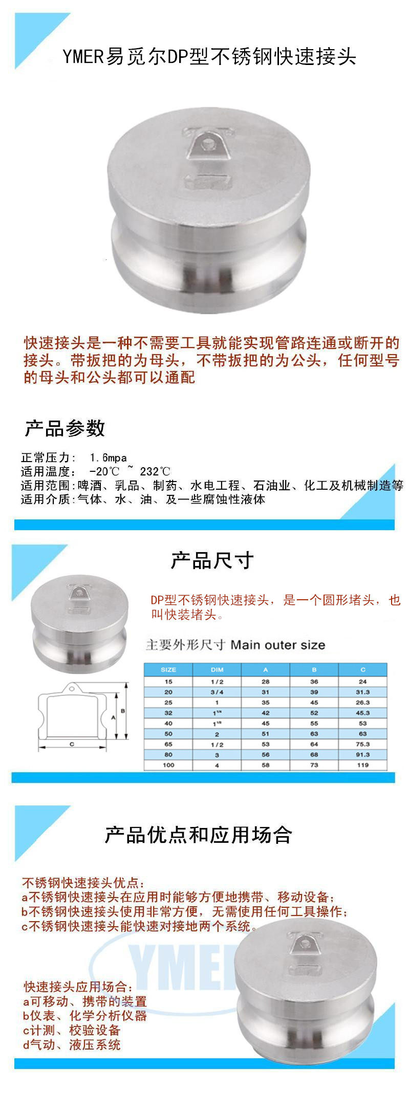 不锈钢快速接头DP型 快装堵头 阳端防尘盖/接头/管接头