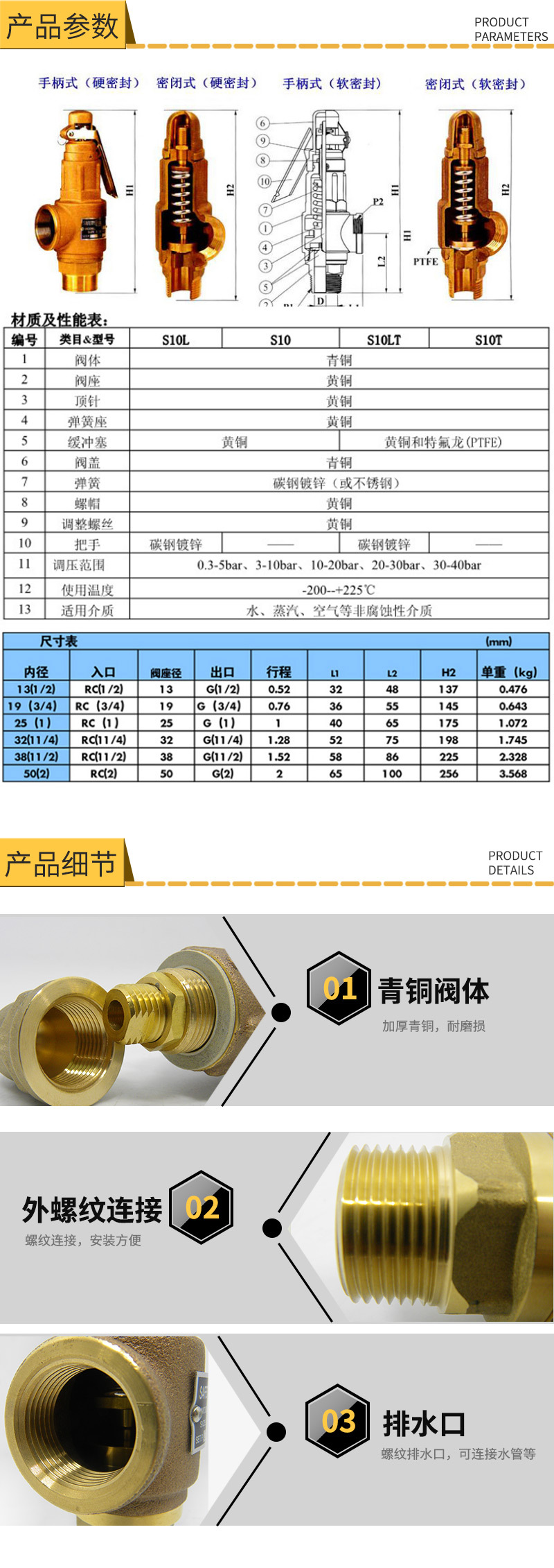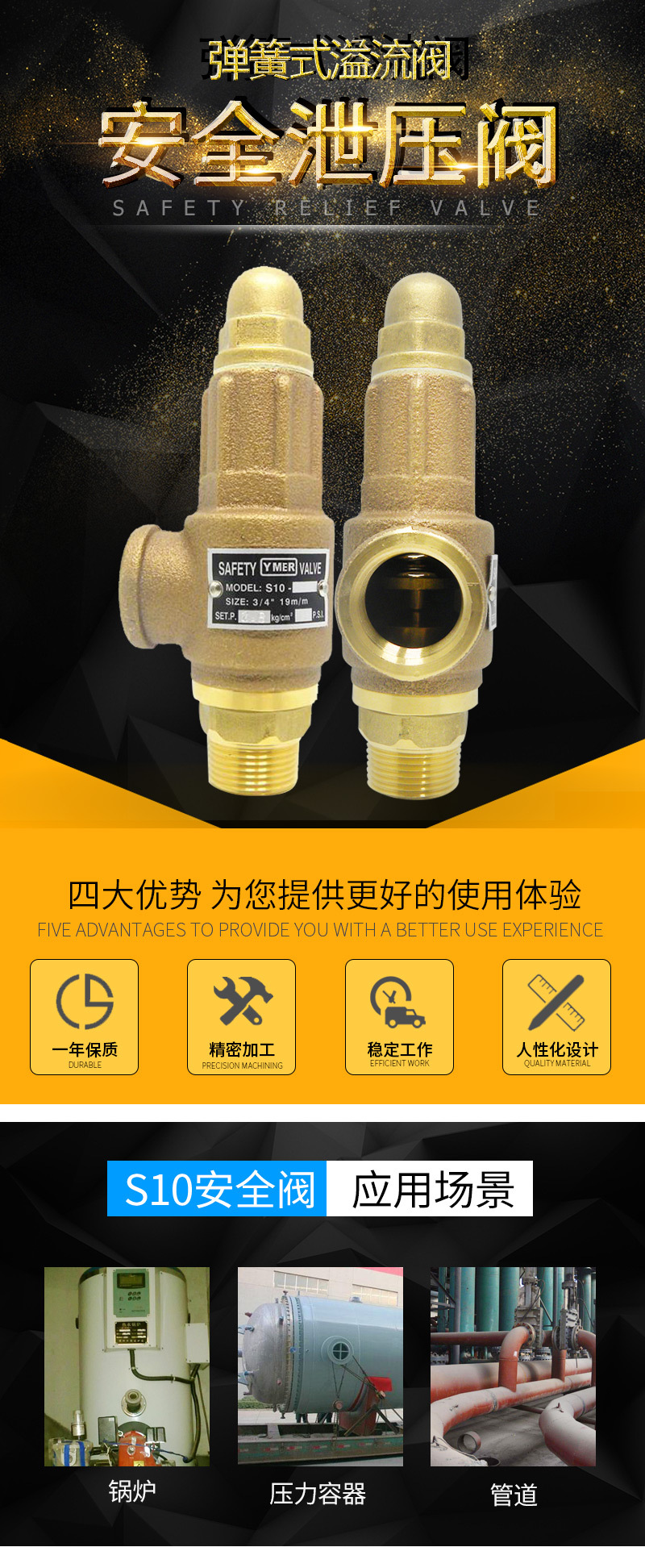 YMER低压蒸汽安全阀 S10弹簧式泄压阀 铜丝扣溢流阀