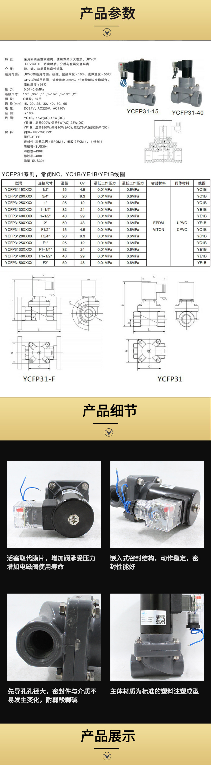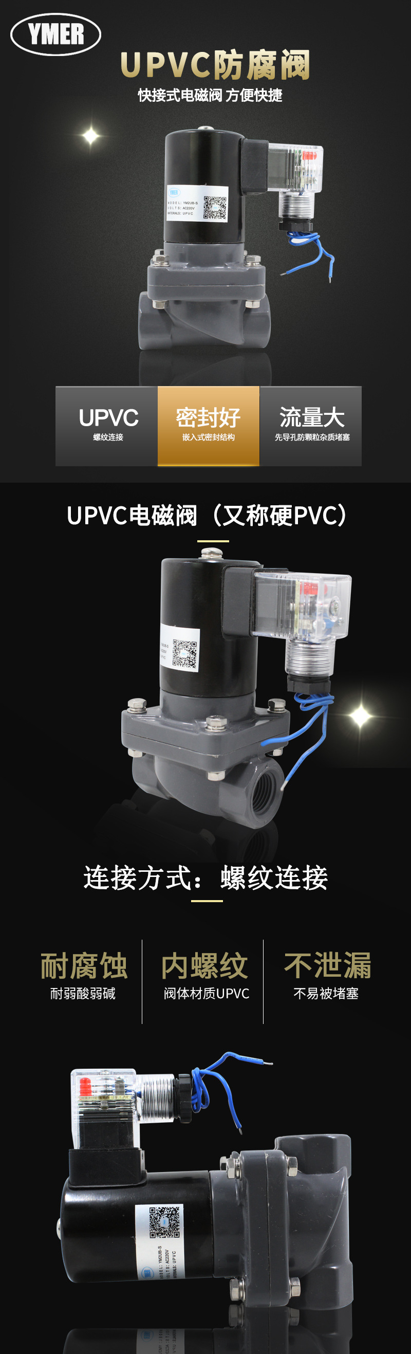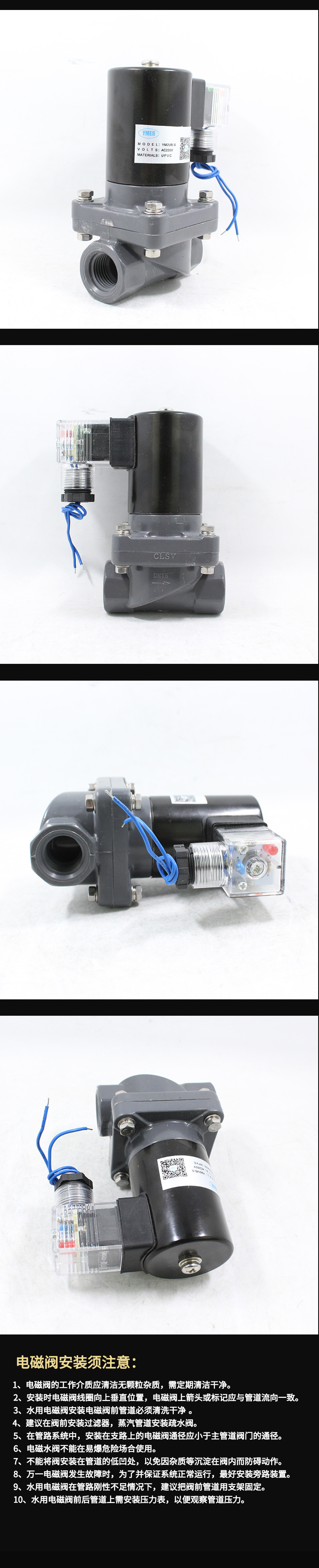 UPVC内螺纹电磁阀 防腐蚀 弱酸弱碱电磁阀气阀 4分6分1寸