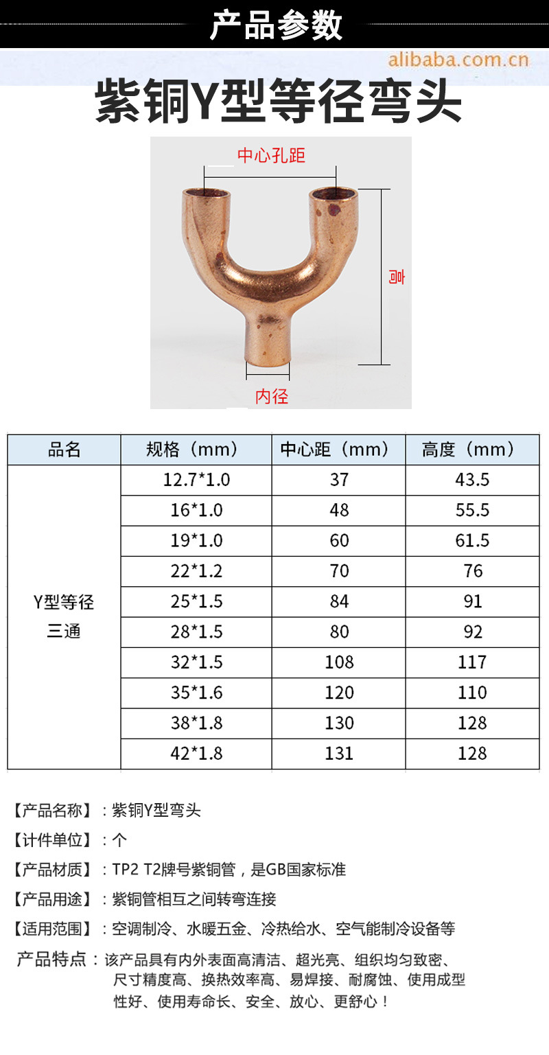 Y型三通紫铜