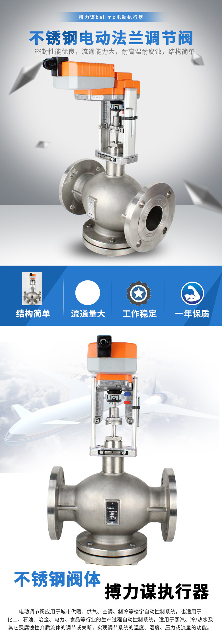 YMER防腐蚀电动调节阀不锈钢蒸汽法兰电动调节阀 搏力谋belimo模拟量执行器