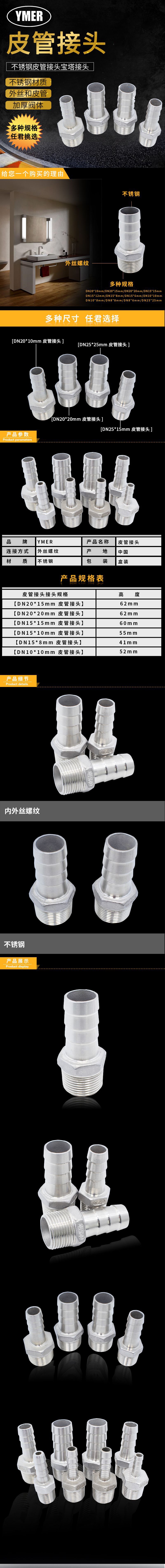 YMER不锈钢格林接头钢管转皮管转接件外丝转宝塔接头软管