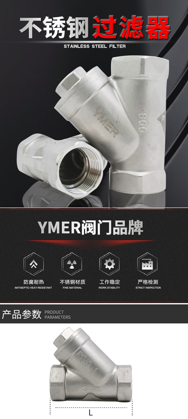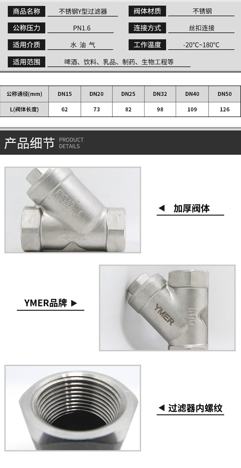 不锈钢丝扣 内螺纹过滤器 Y型过滤器 4分 6分 1寸 2寸 包邮