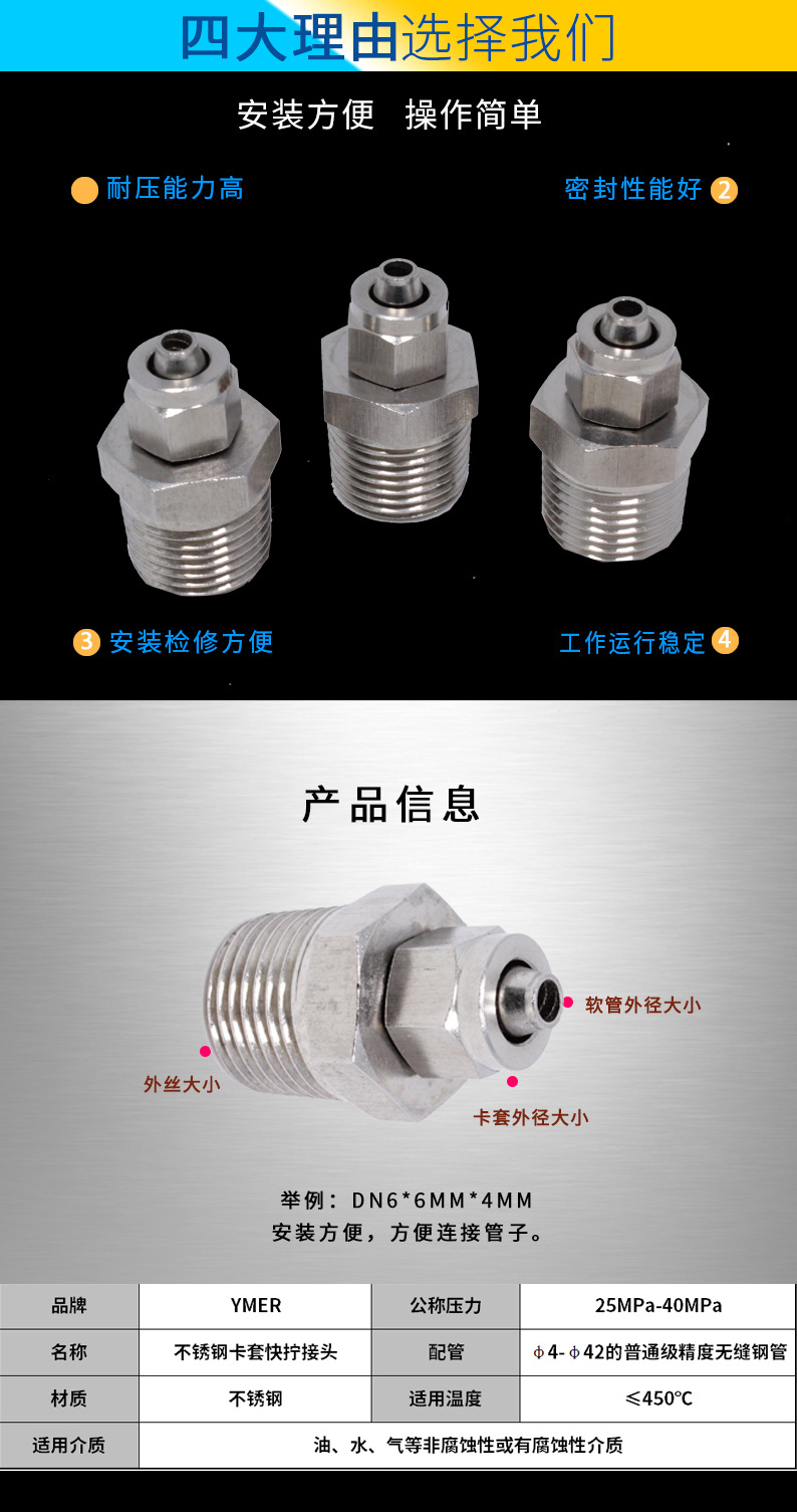 不锈钢快拧直通终端 直通快拧软管四氟管PU管接头