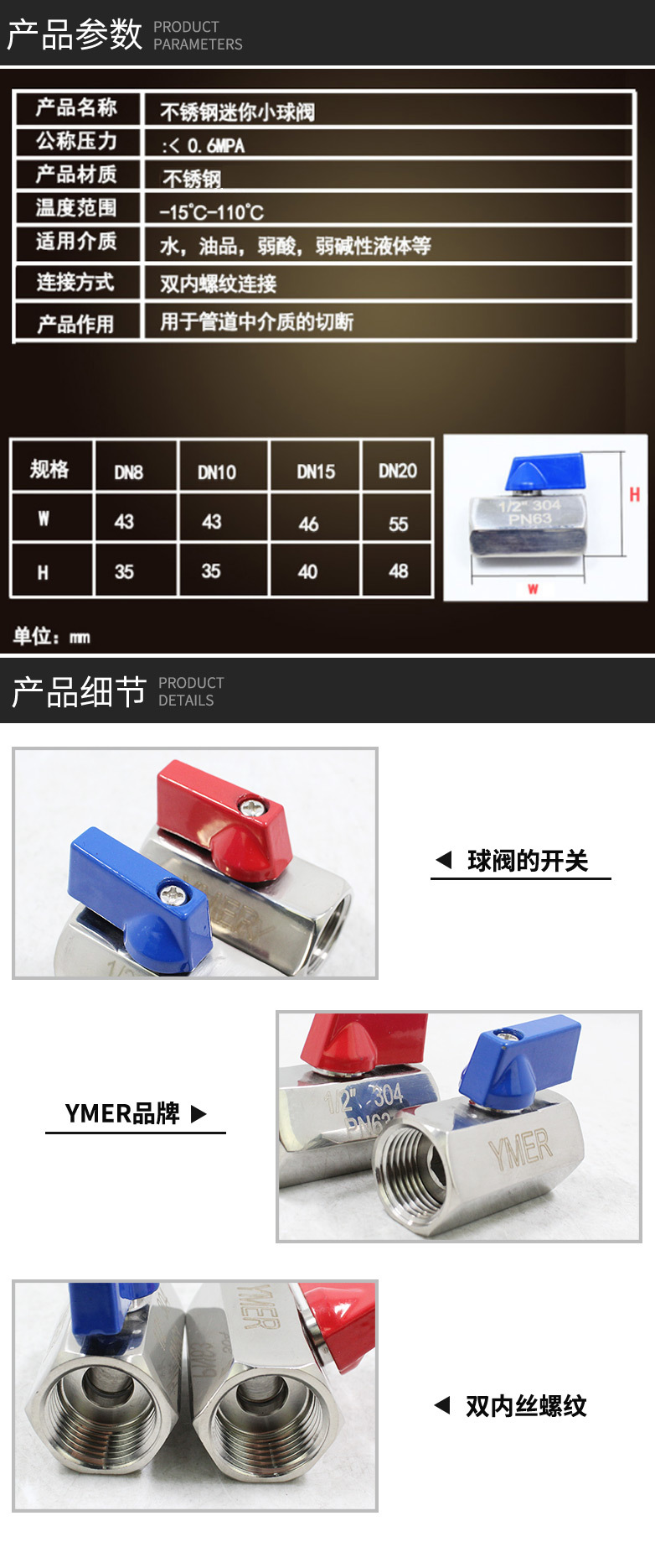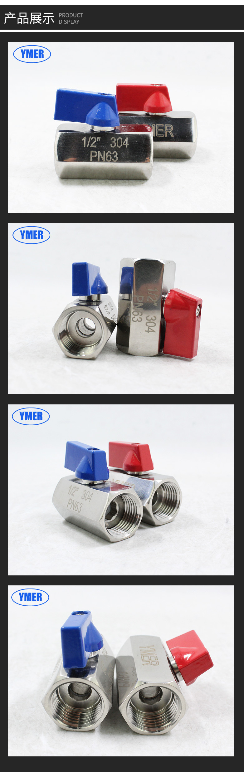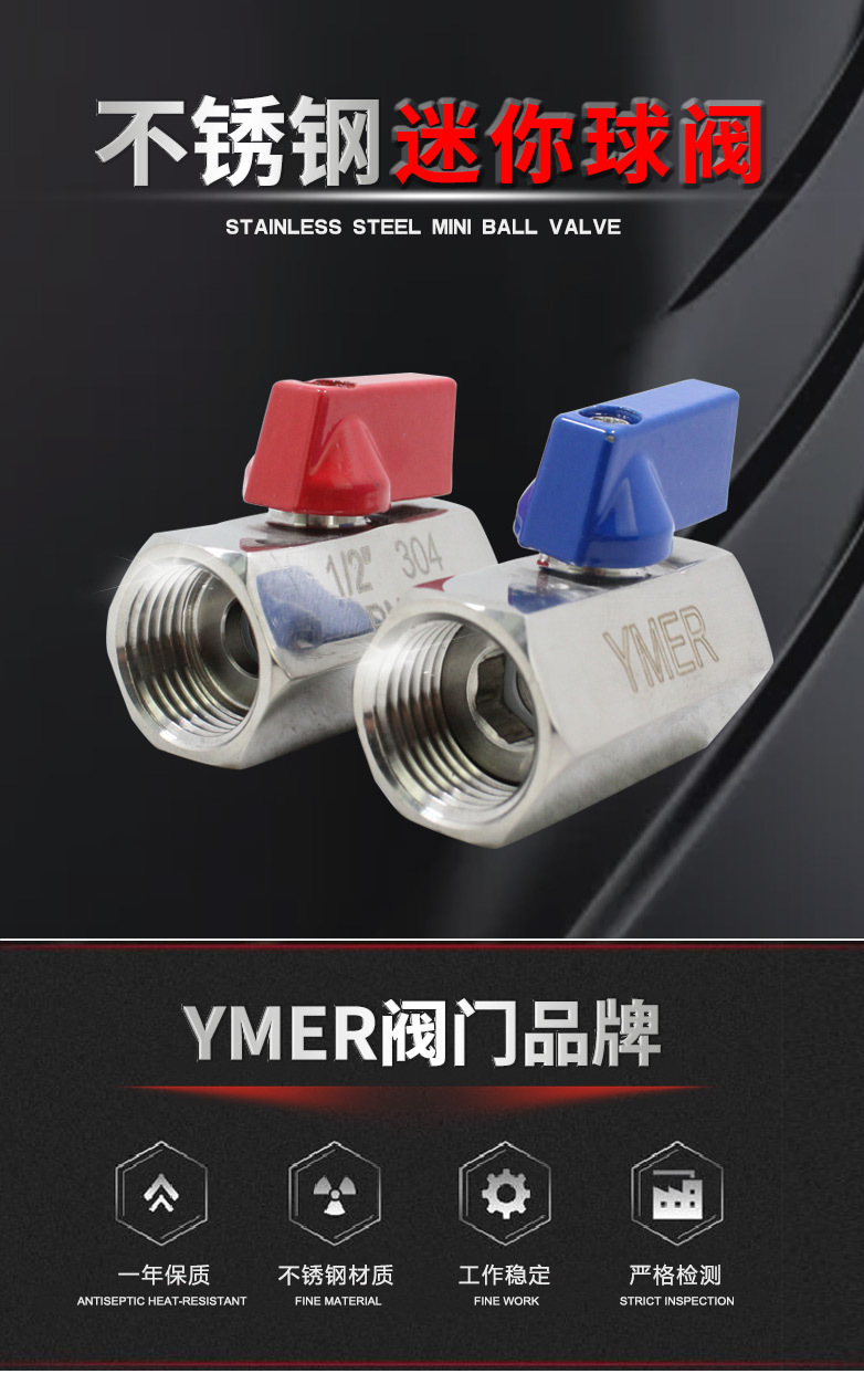 YMER内螺纹不锈钢球阀 1分2分3分4分水管开关 PN63热水管迷你球阀