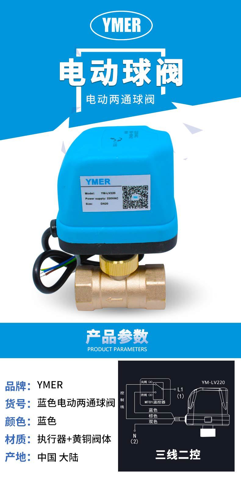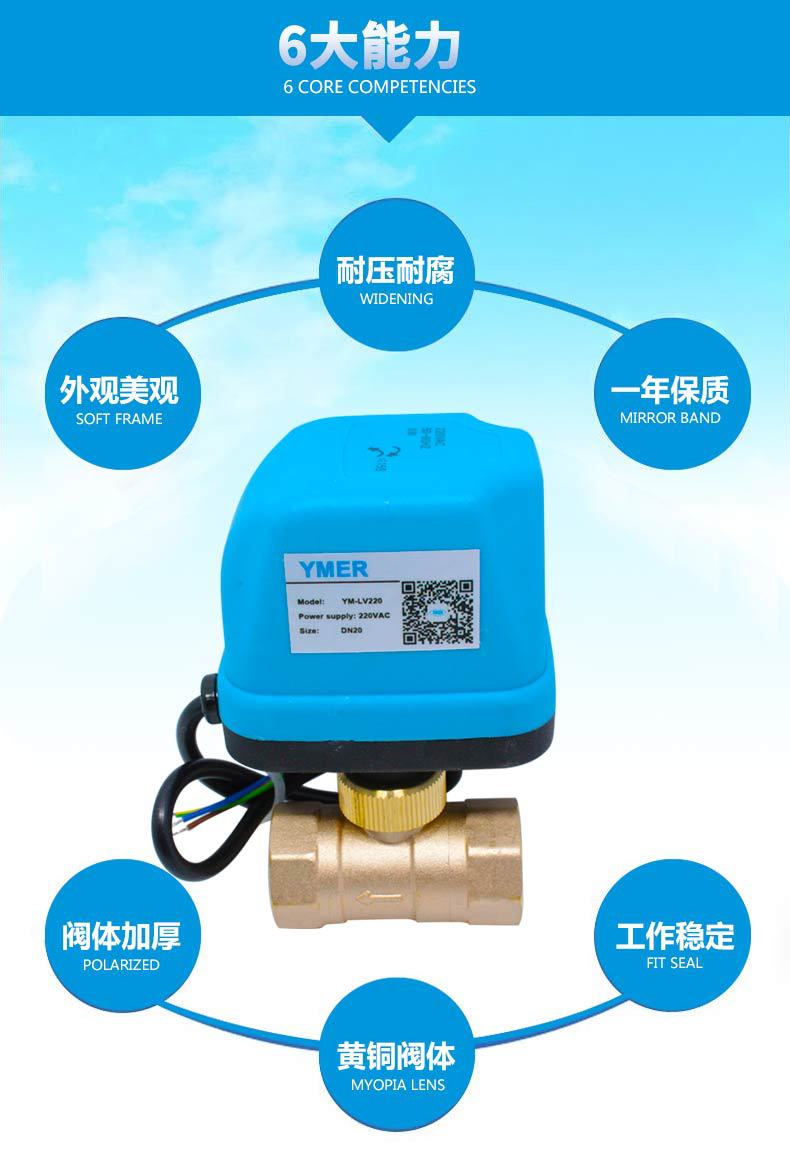 YMER 内螺纹黄铜电动球阀 丝扣空调风机盘管电动二通阀 YM-BV2011
