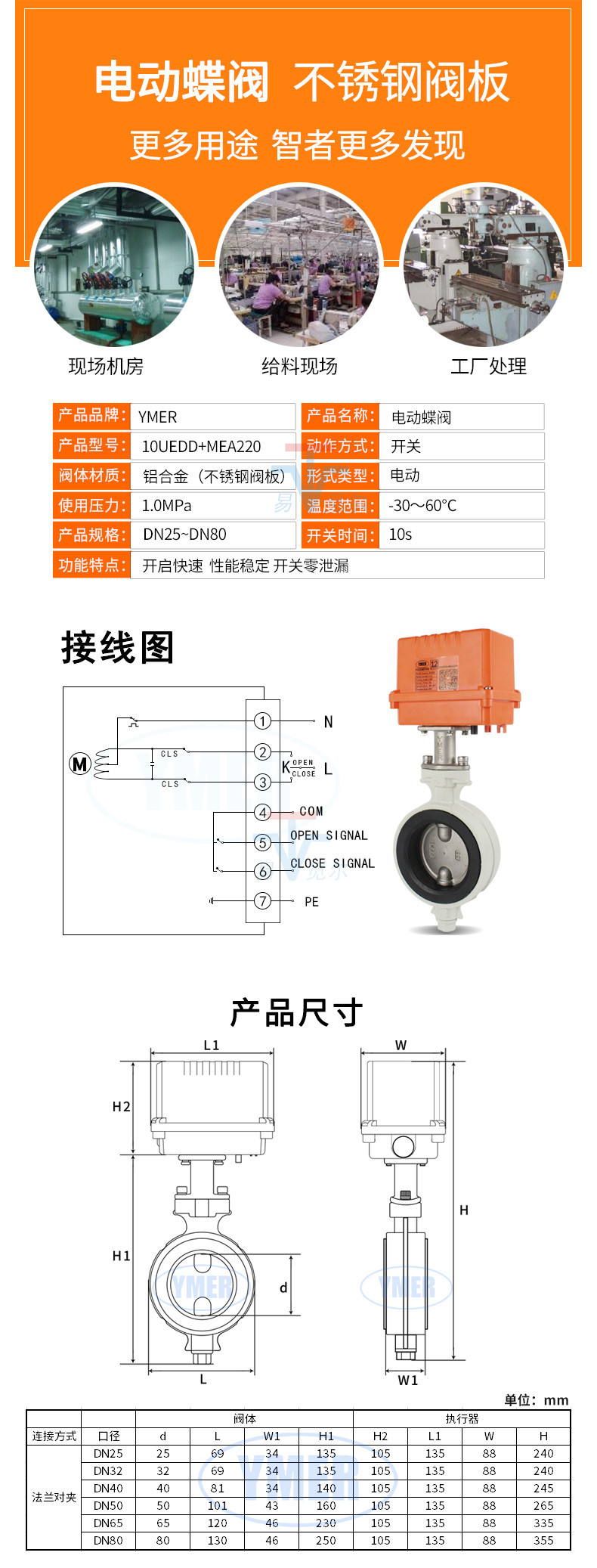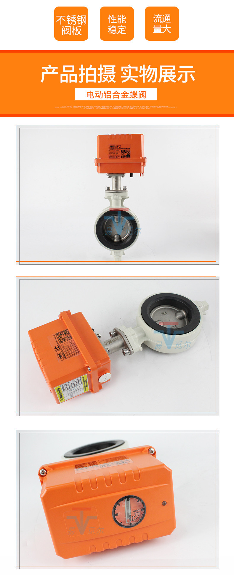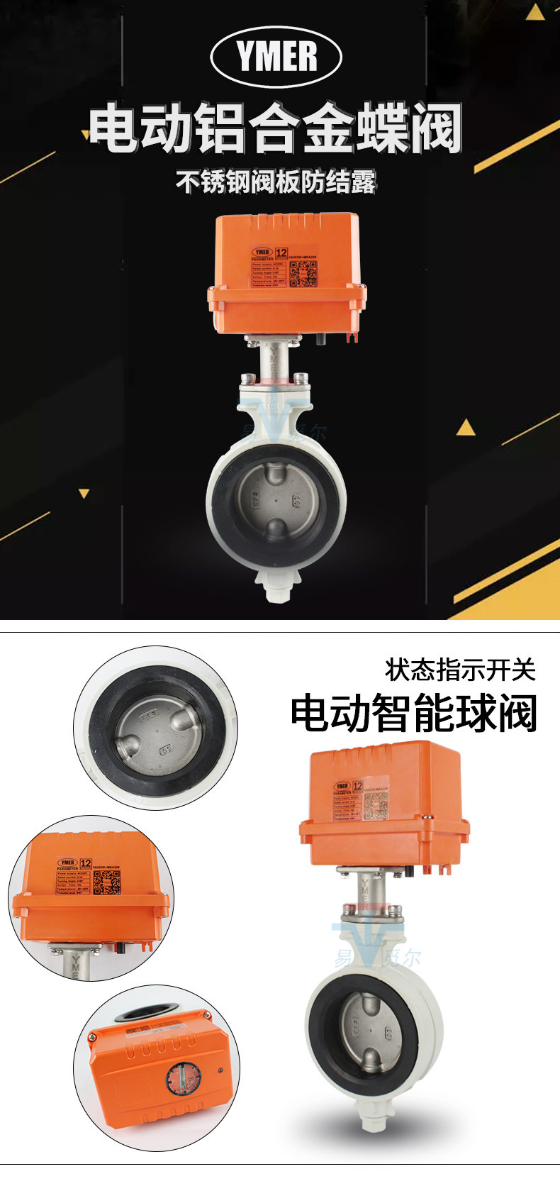 YMER DN100 DN50对夹式电动蝶阀 dn80铝合金220V橡胶密封开关阀门