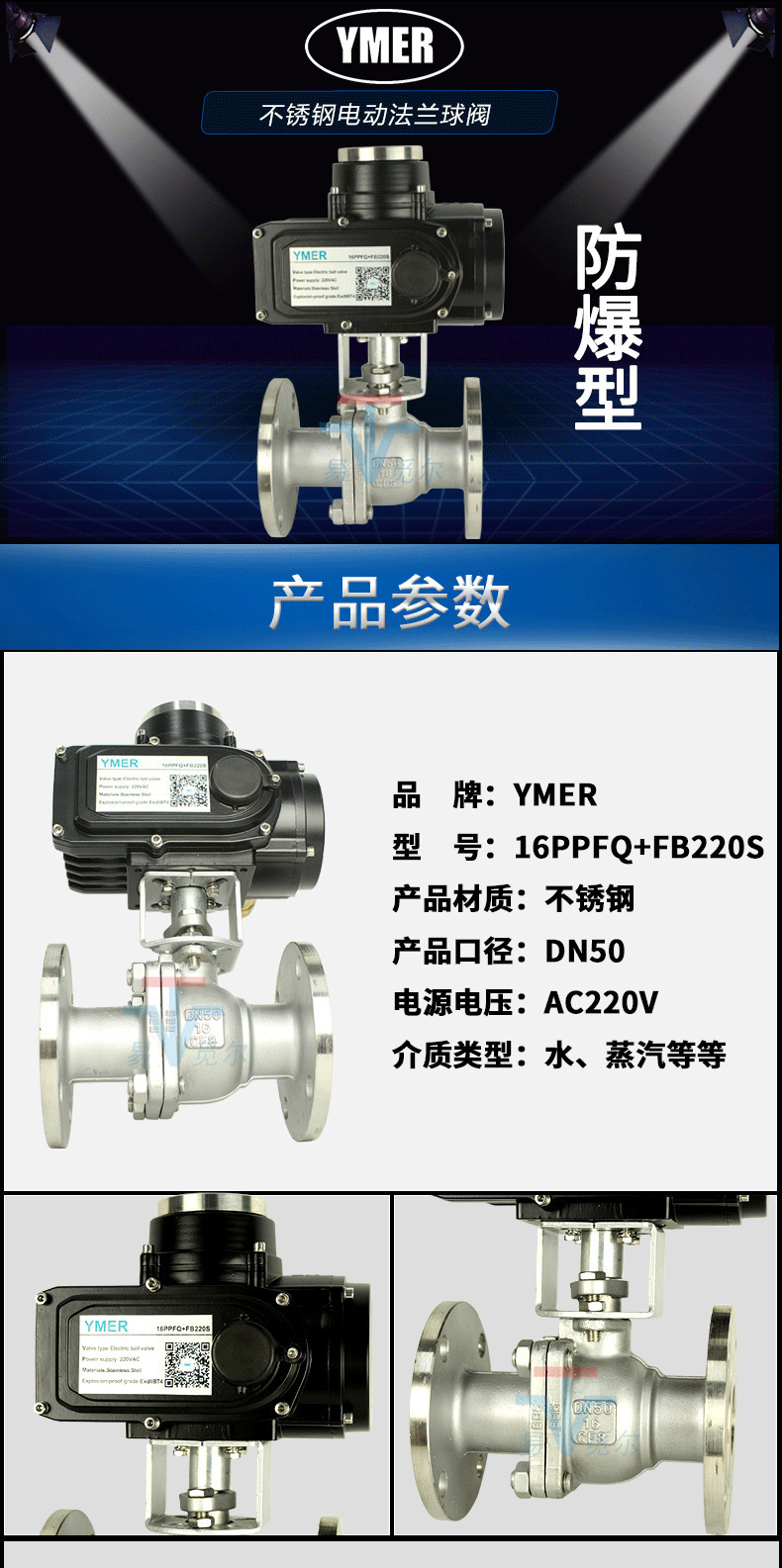 YMER防爆电动球阀 不锈钢法兰燃气煤气天然气瓦斯电动关断阀门