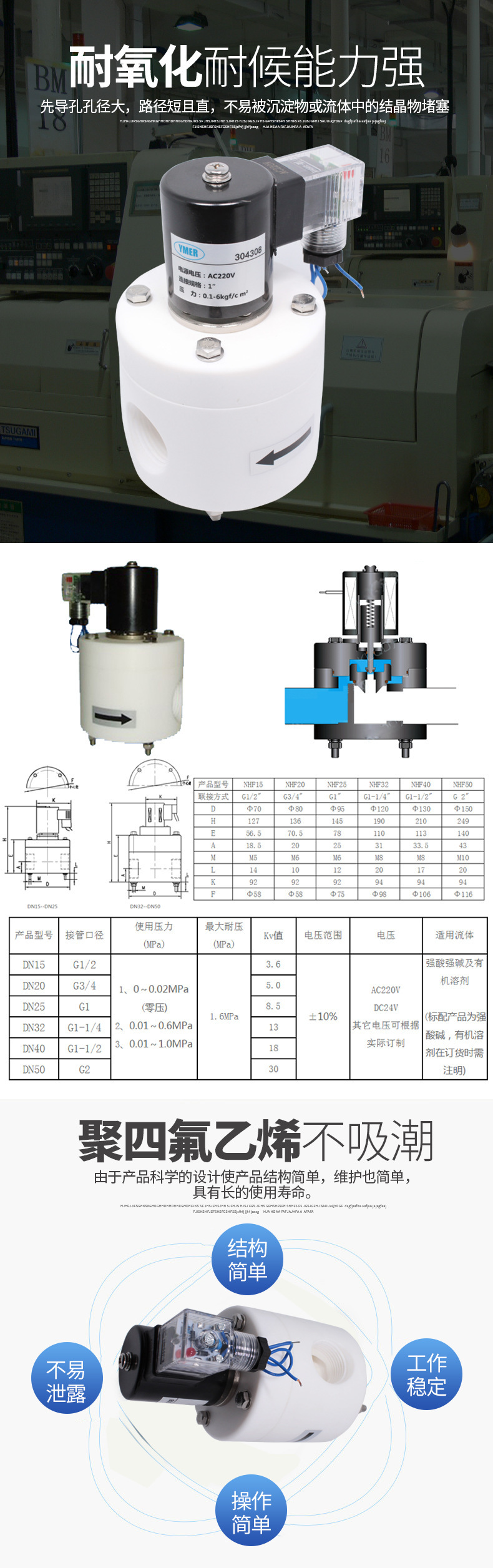 YMER防腐蚀电磁阀 常闭型电磁开关阀 耐酸碱电动阀