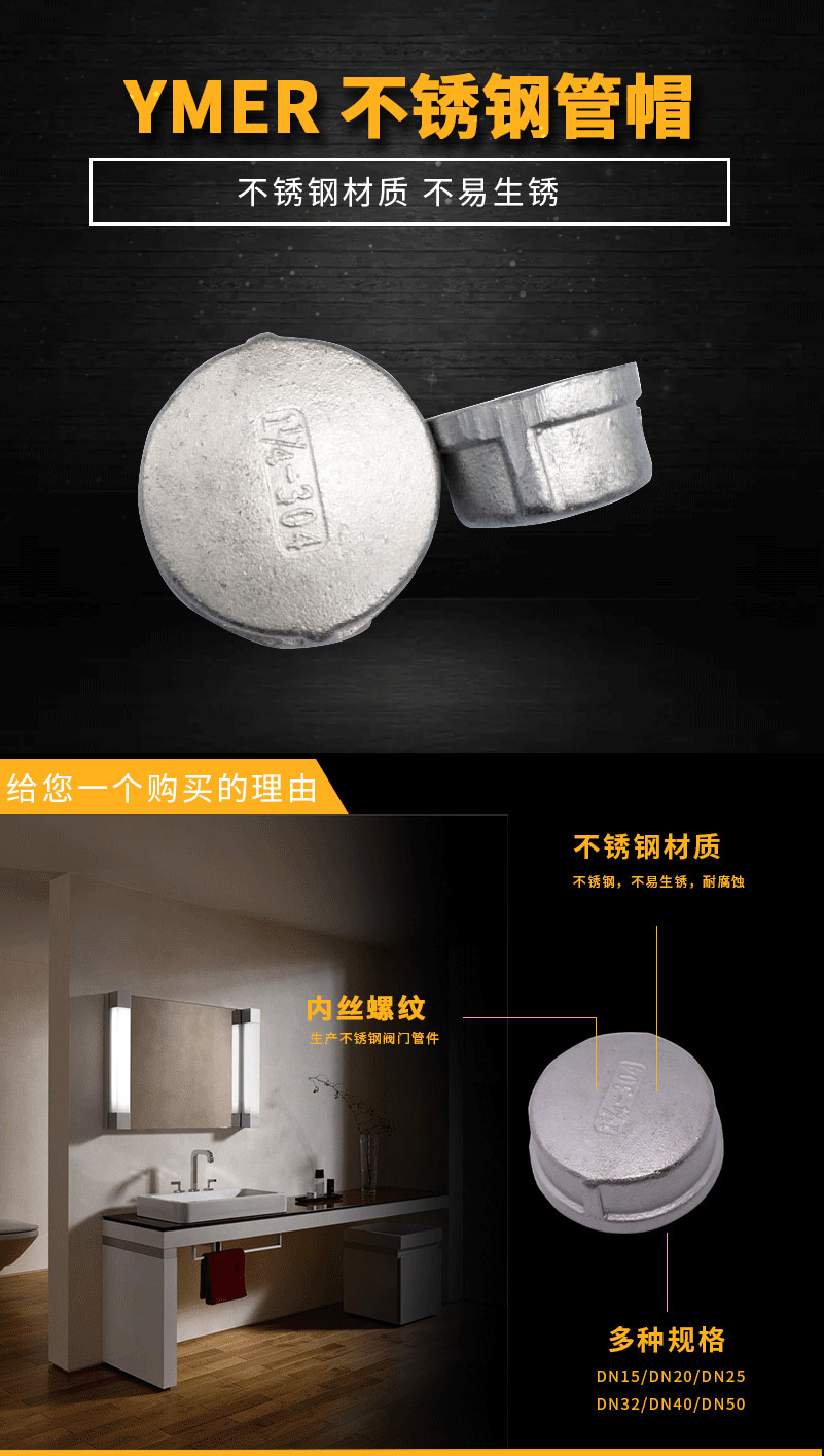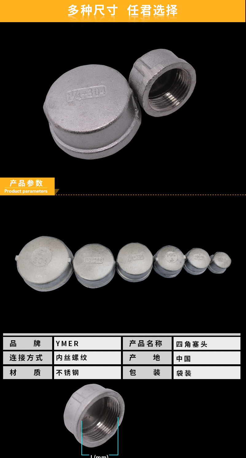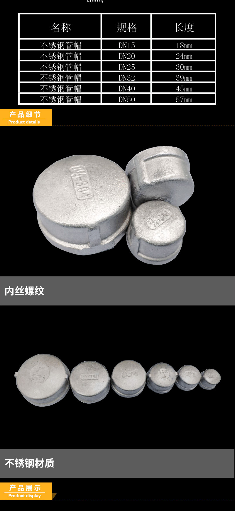 不锈钢管帽材质丝扣内螺纹水管堵帽配件4分堵头DN15