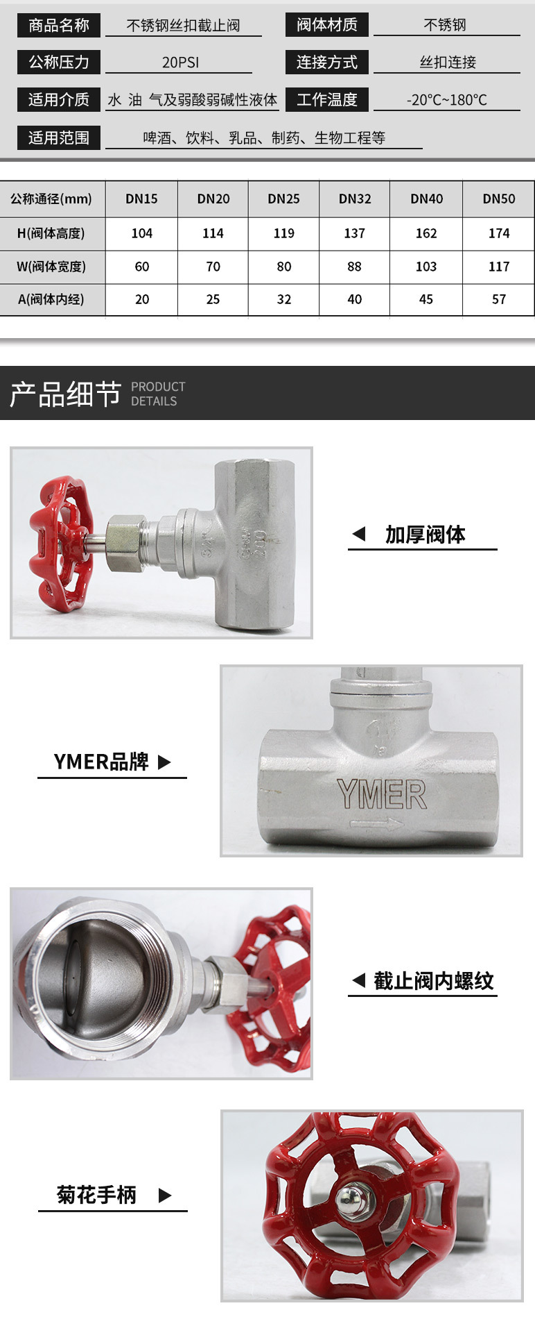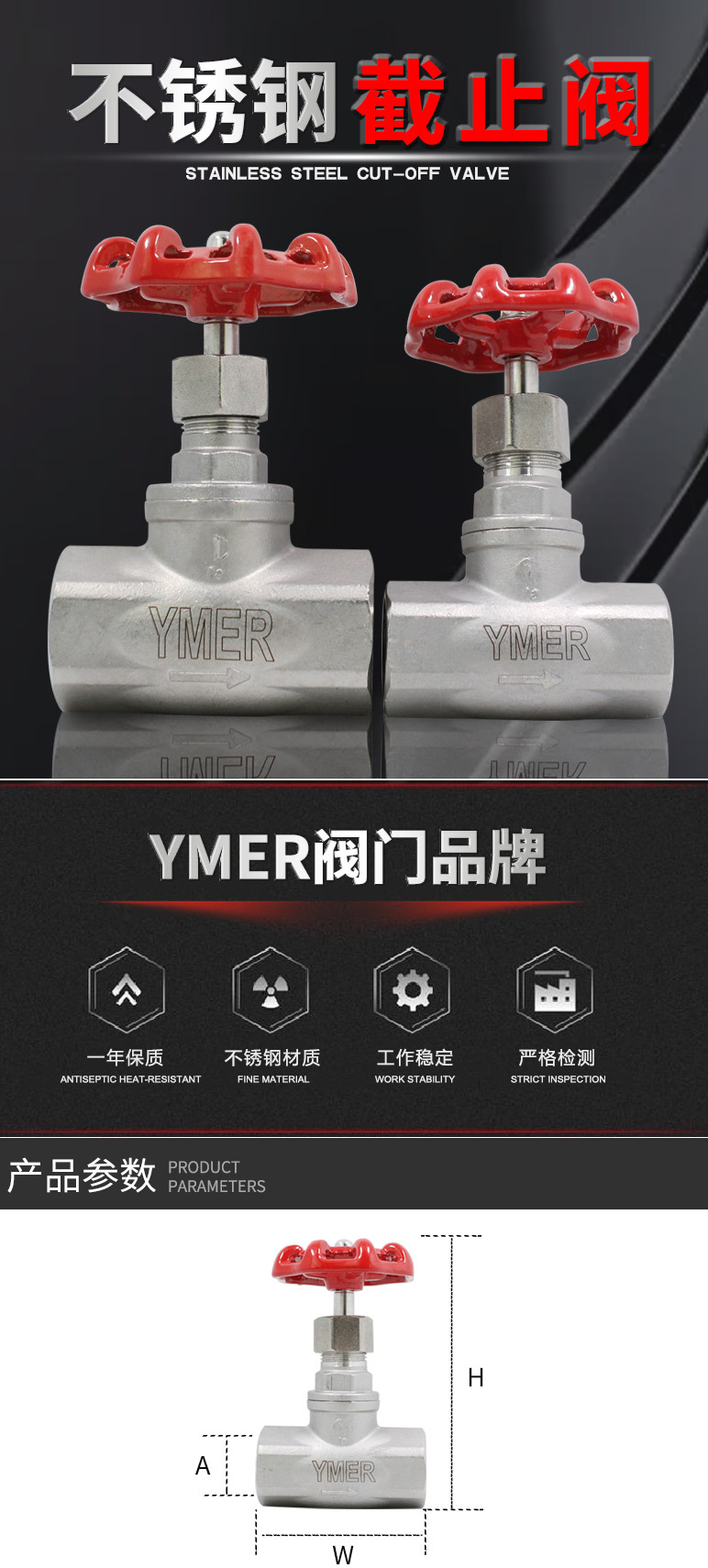 不锈钢内螺纹截止阀 丝口截止阀DN25 1寸 4分截止阀 包邮