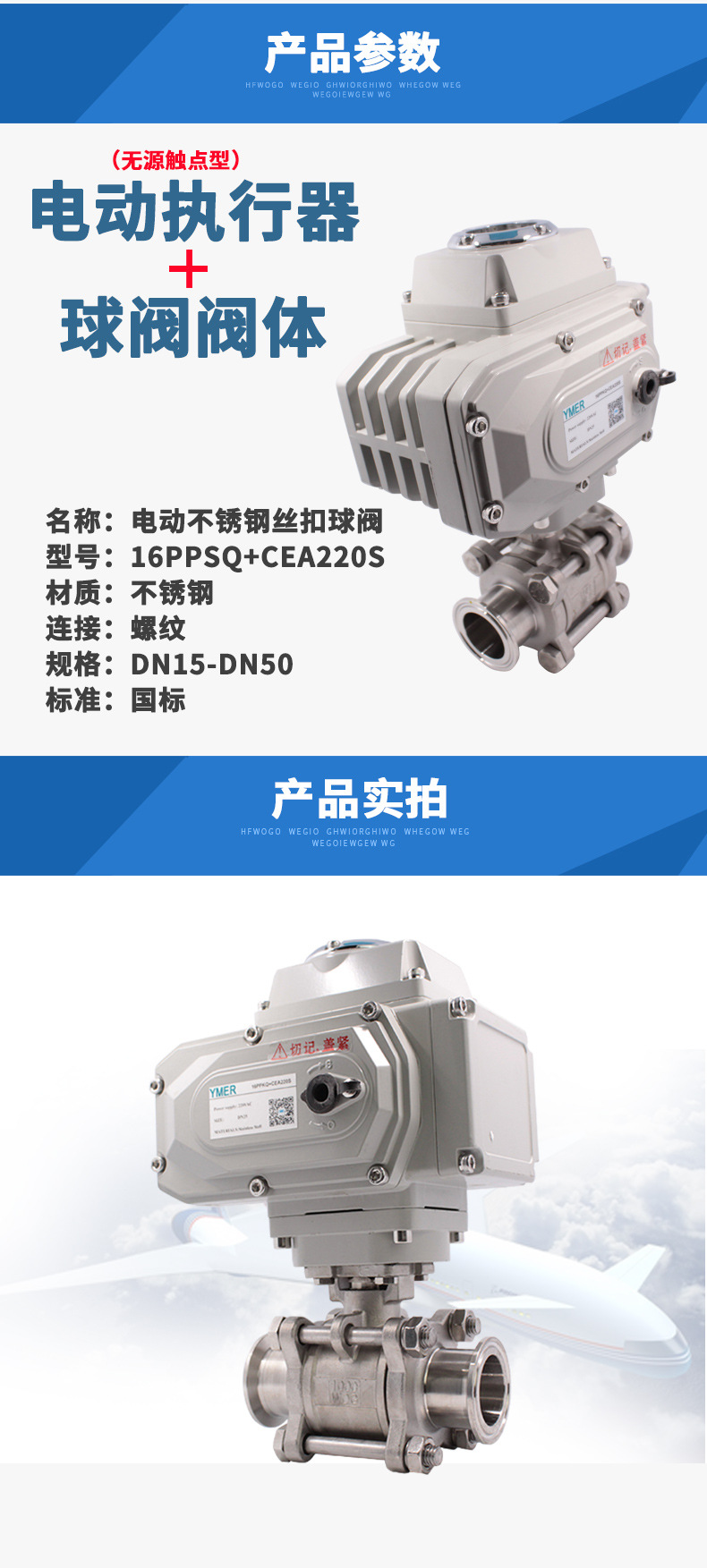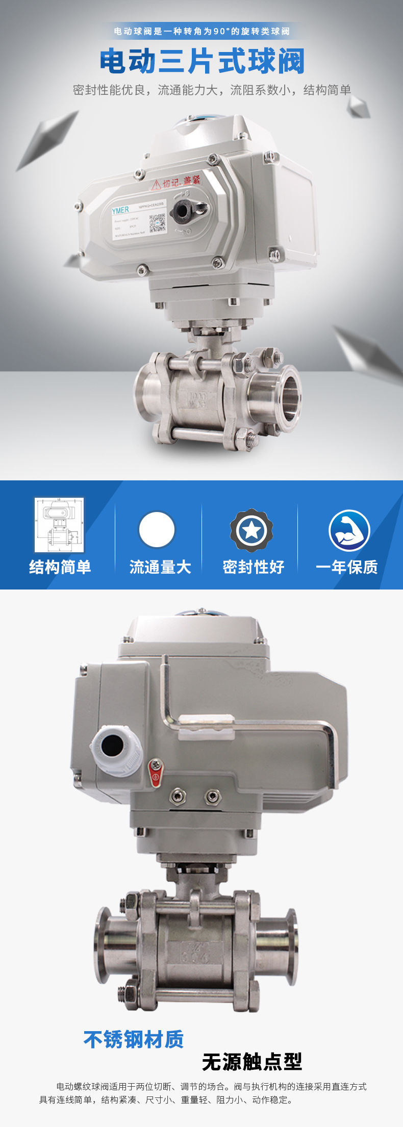 YMER 不锈钢304卡盘电动球阀 DN50三片式高平台快装电动切断阀