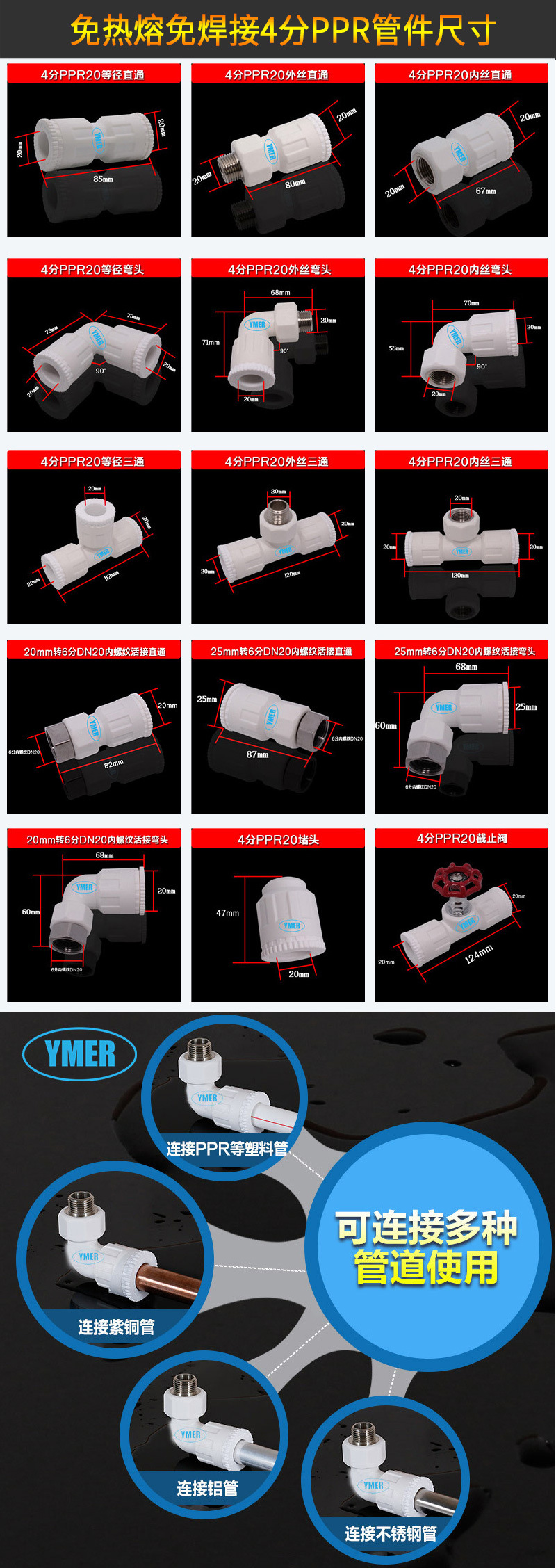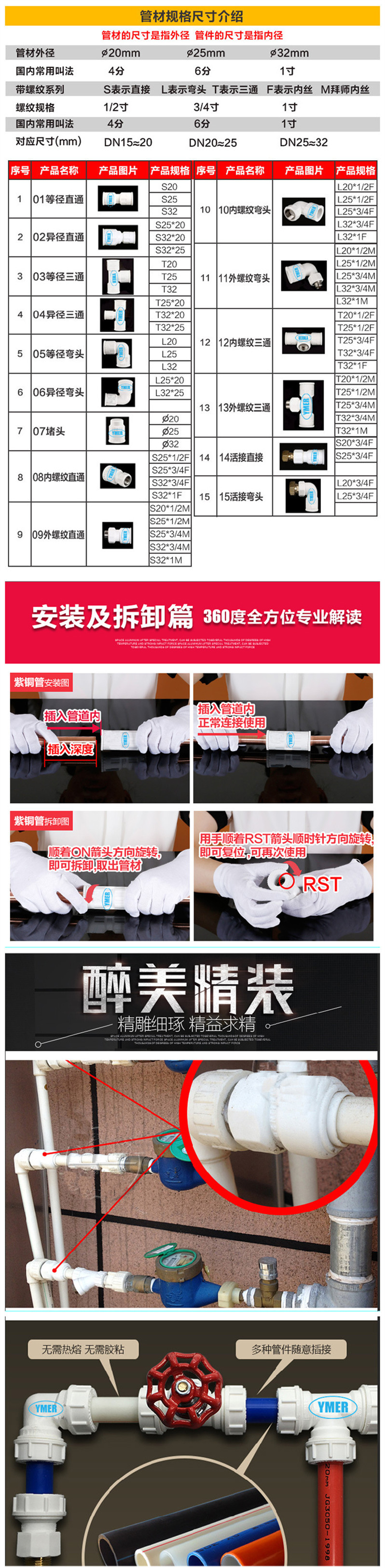PPR4分免热熔免焊接快插热水器直通活接水表活接头直活接快速接头
