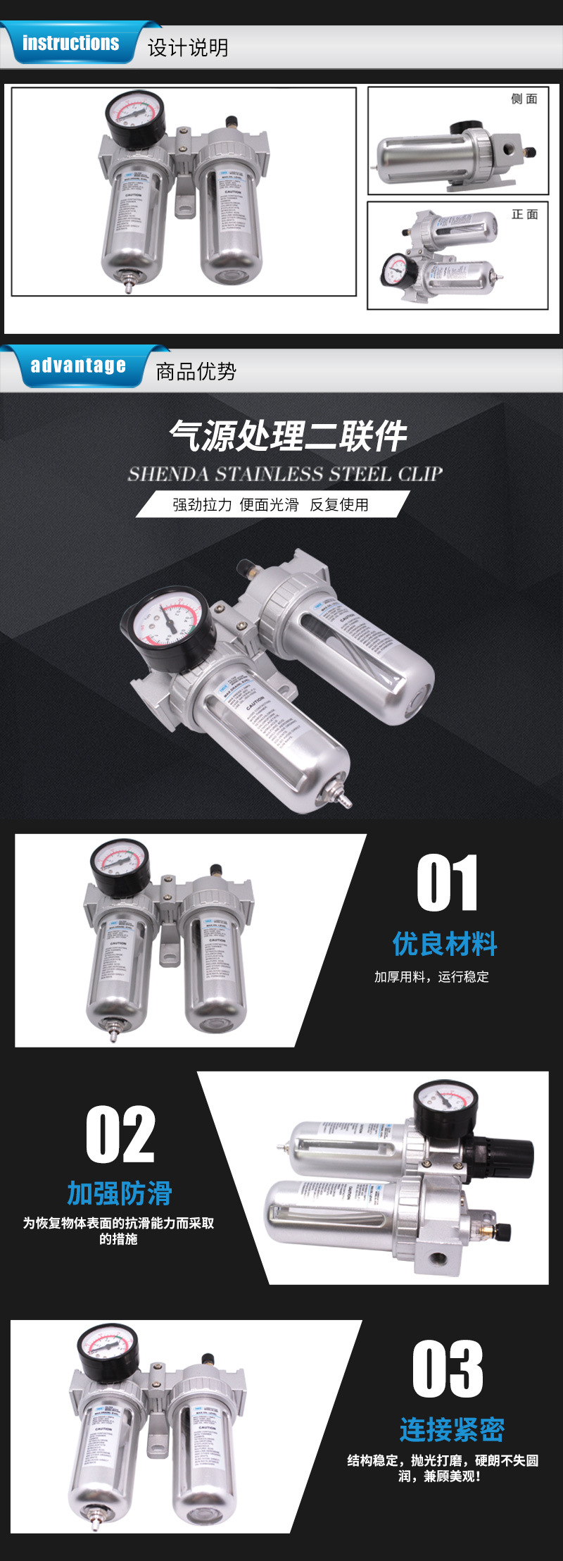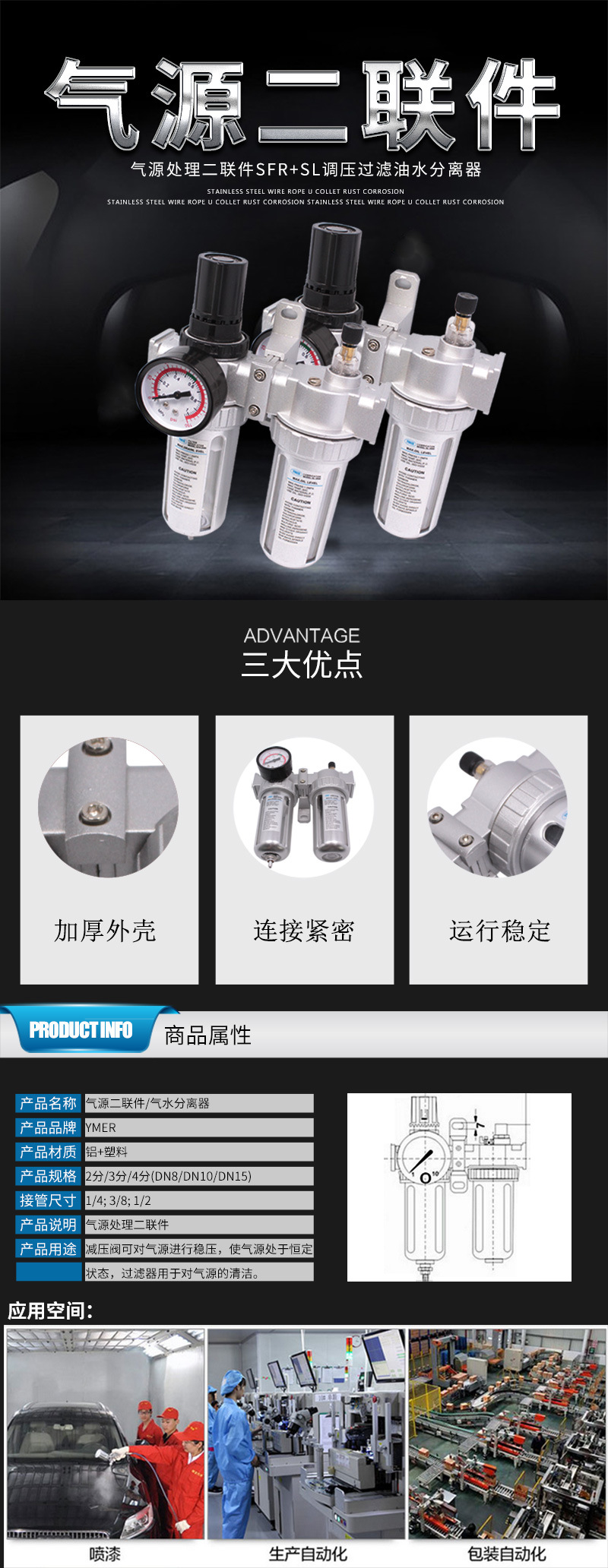 YMER汽源两联件压缩空气过滤减压阀油水分离器气动阀门起源二联件
