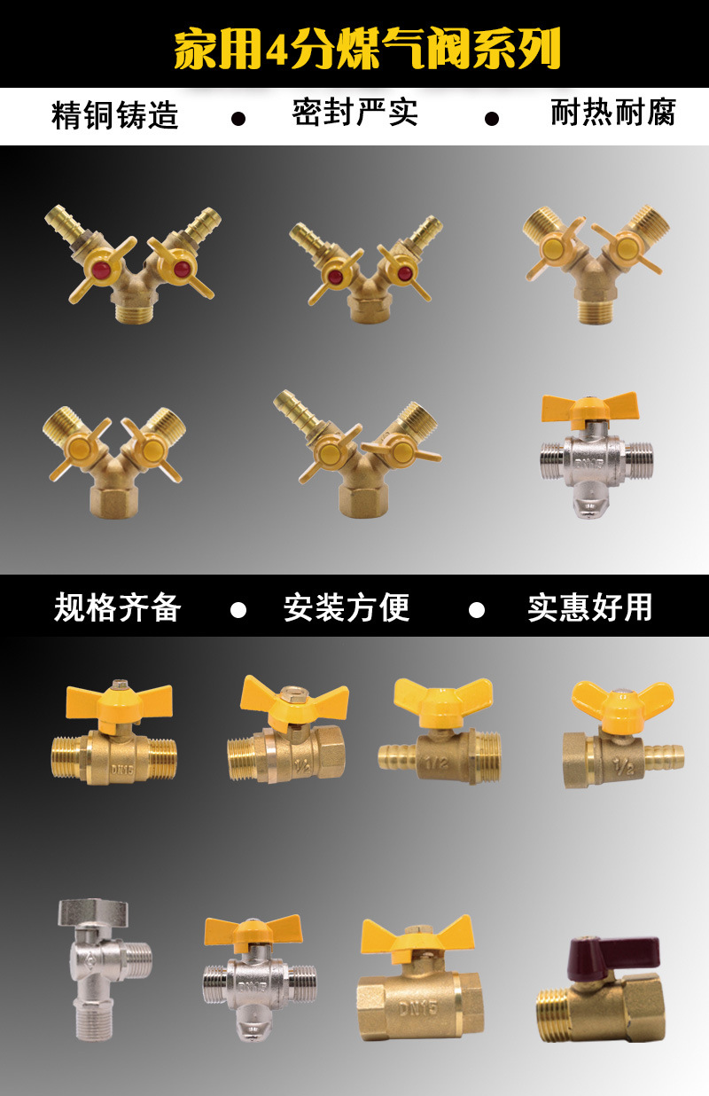 全铜天然气球阀四分丝扣转宝塔接头两通煤气开关阀