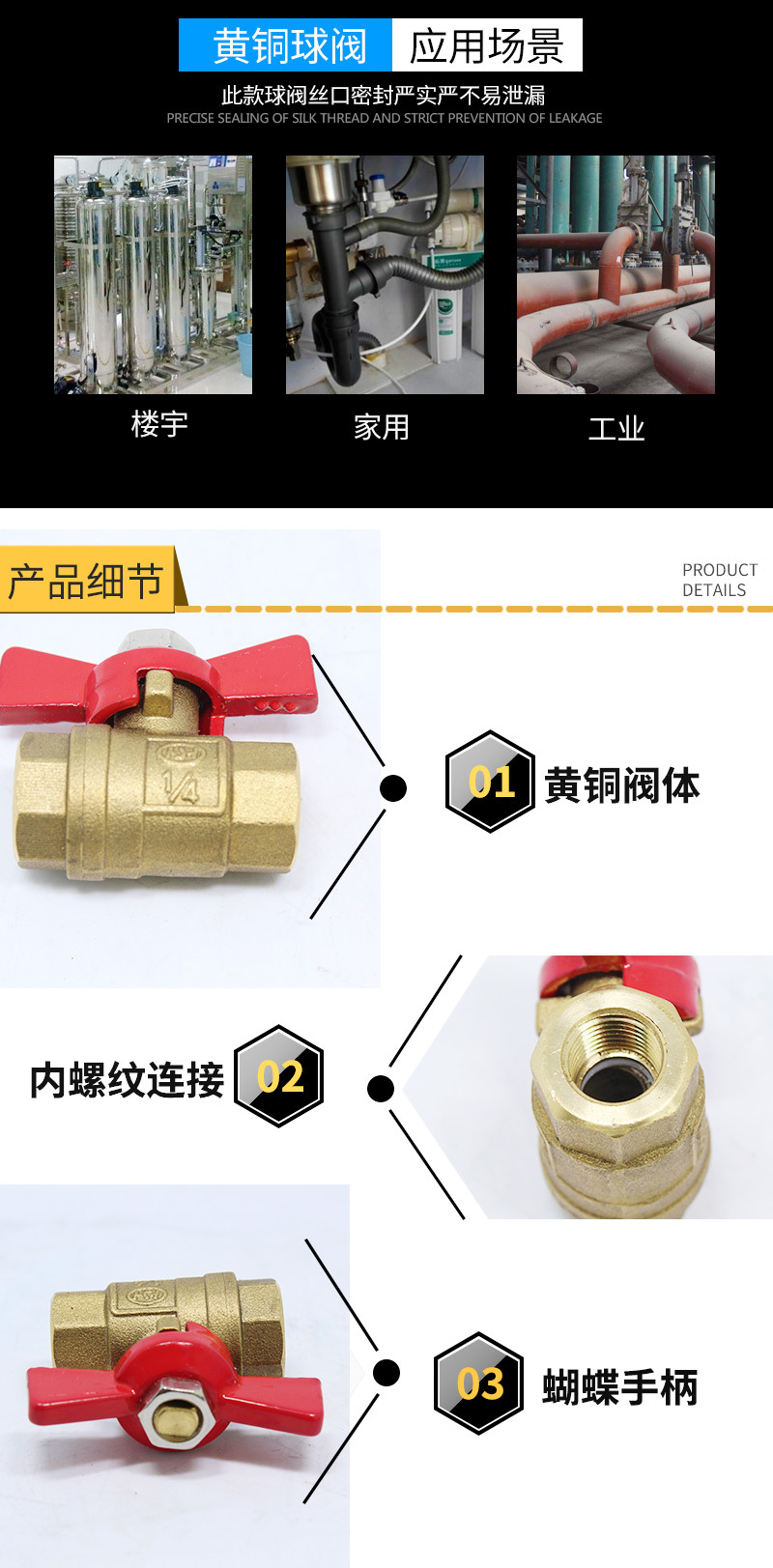 手动两片式黄铜球阀自来水水管手动两通阀3分蝴蝶柄迷你手动阀
