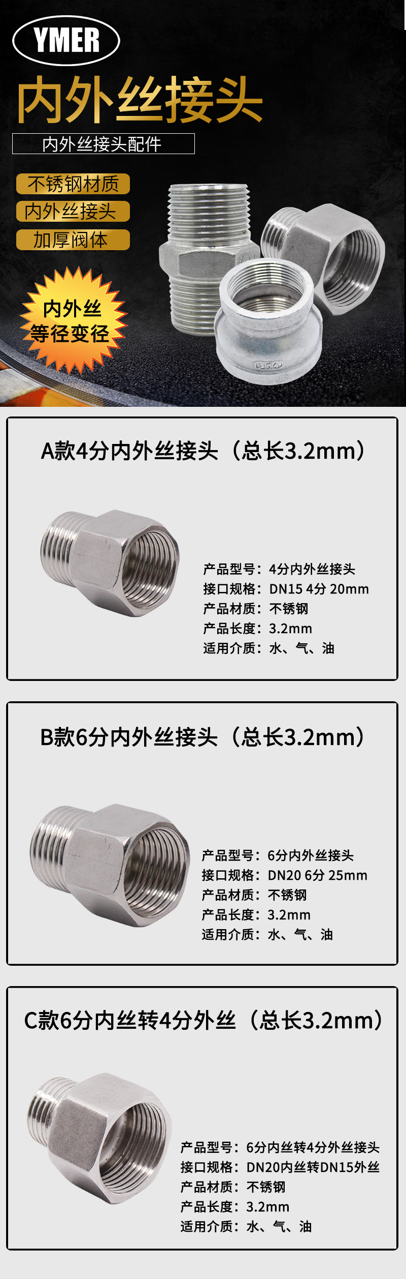 外丝直接对丝 内丝管箍 4分6分1寸不锈钢水管管件接头 对丝 管箍
