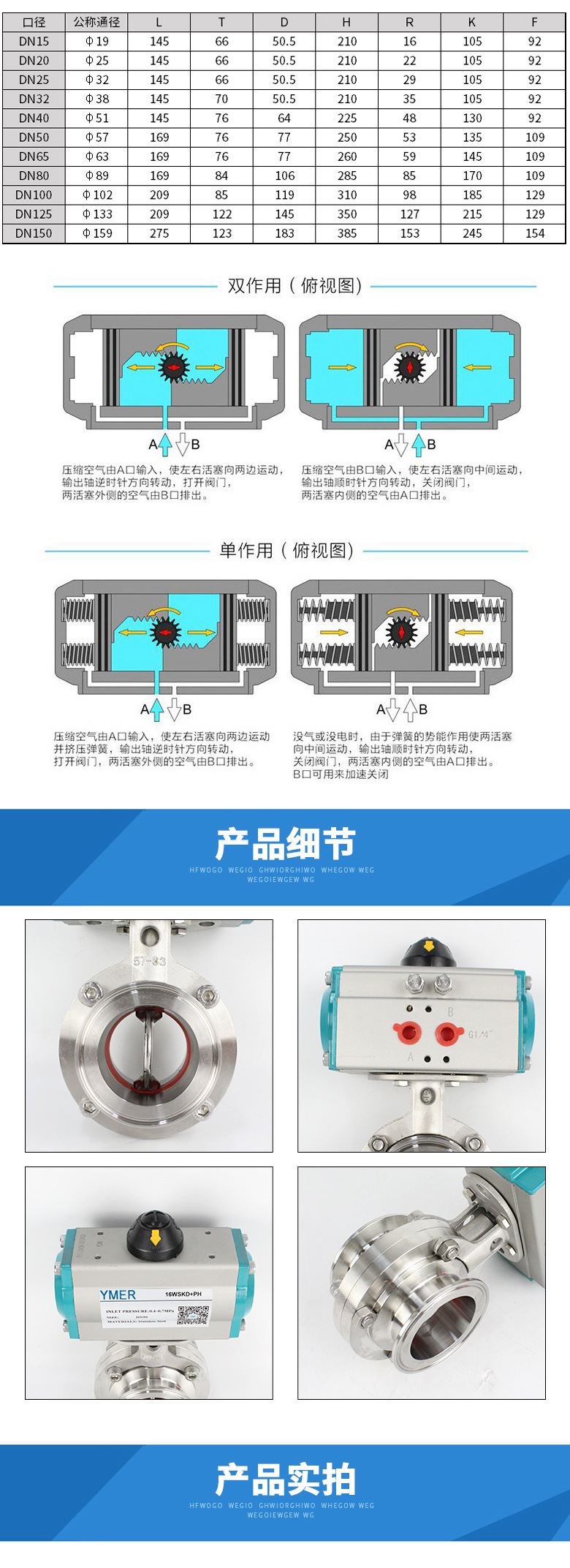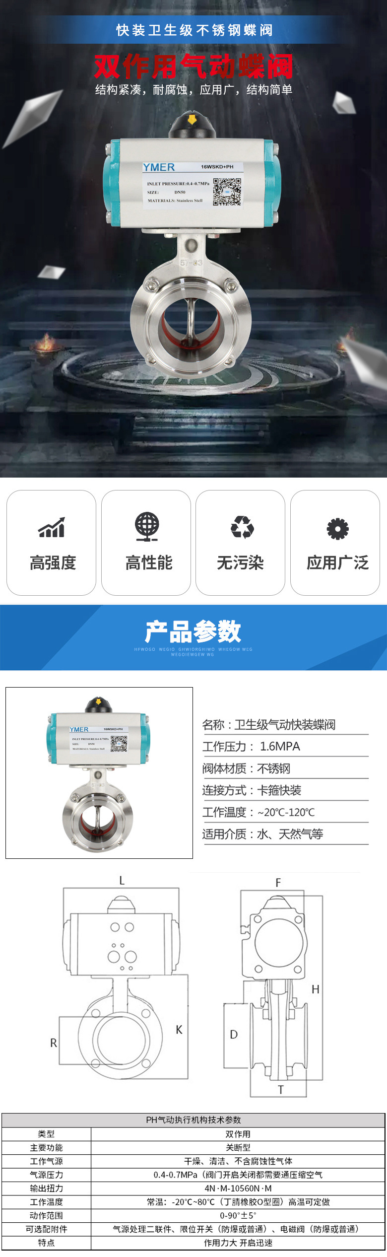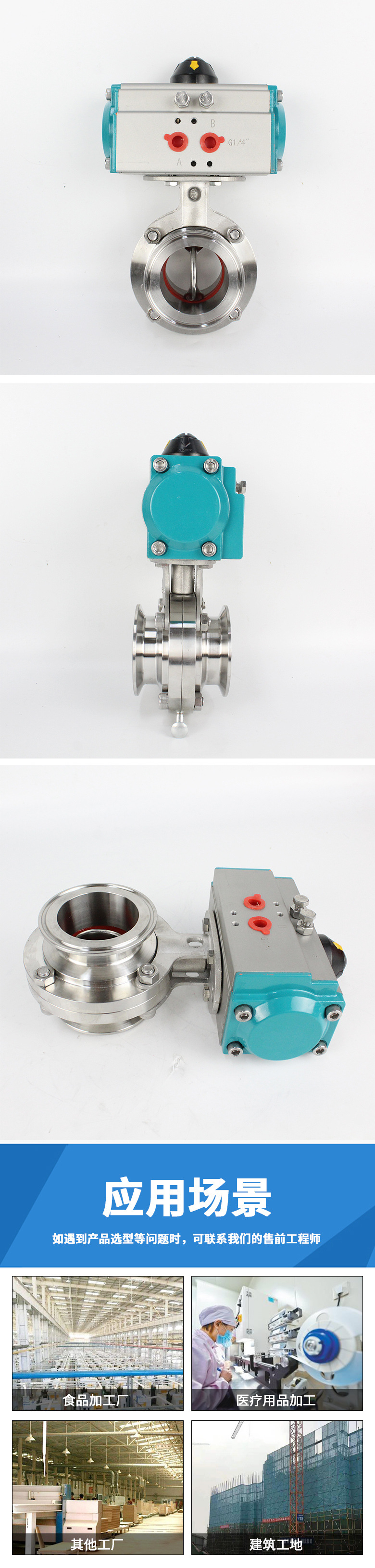 卫生级快装气动蝶阀不锈钢304双作用卡箍式光面食品级气动快装阀