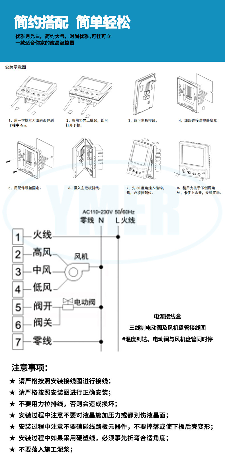 液晶温控器中央空调面板三速开关空调开关风机盘管可调温控器