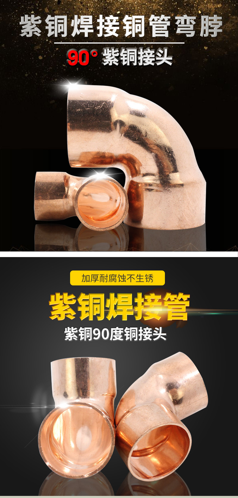 90度紫铜焊接铜管弯脖 承口扩口铜曲接头 空调紫铜弯头