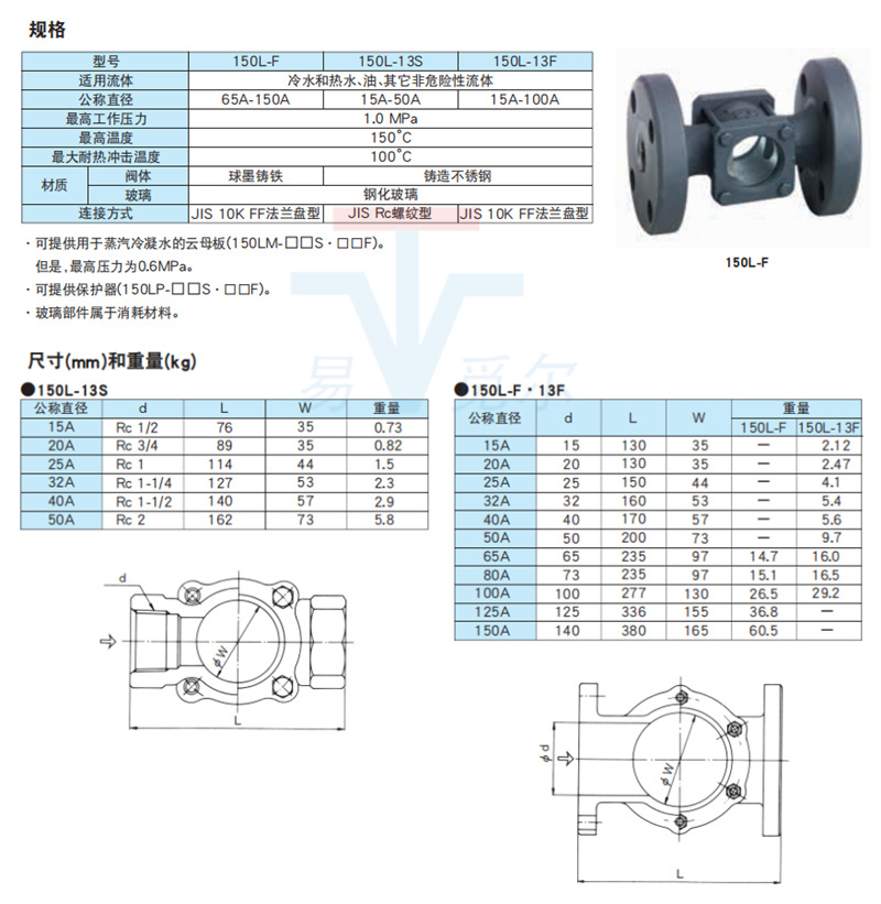 日本YS耀希达凯观视镜 150L-F 流量显示器DN65 观察器