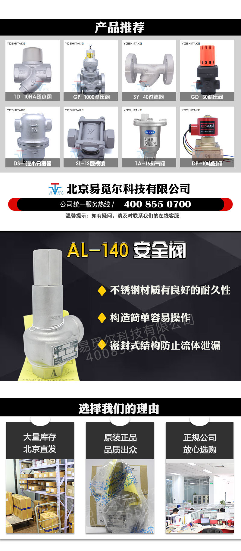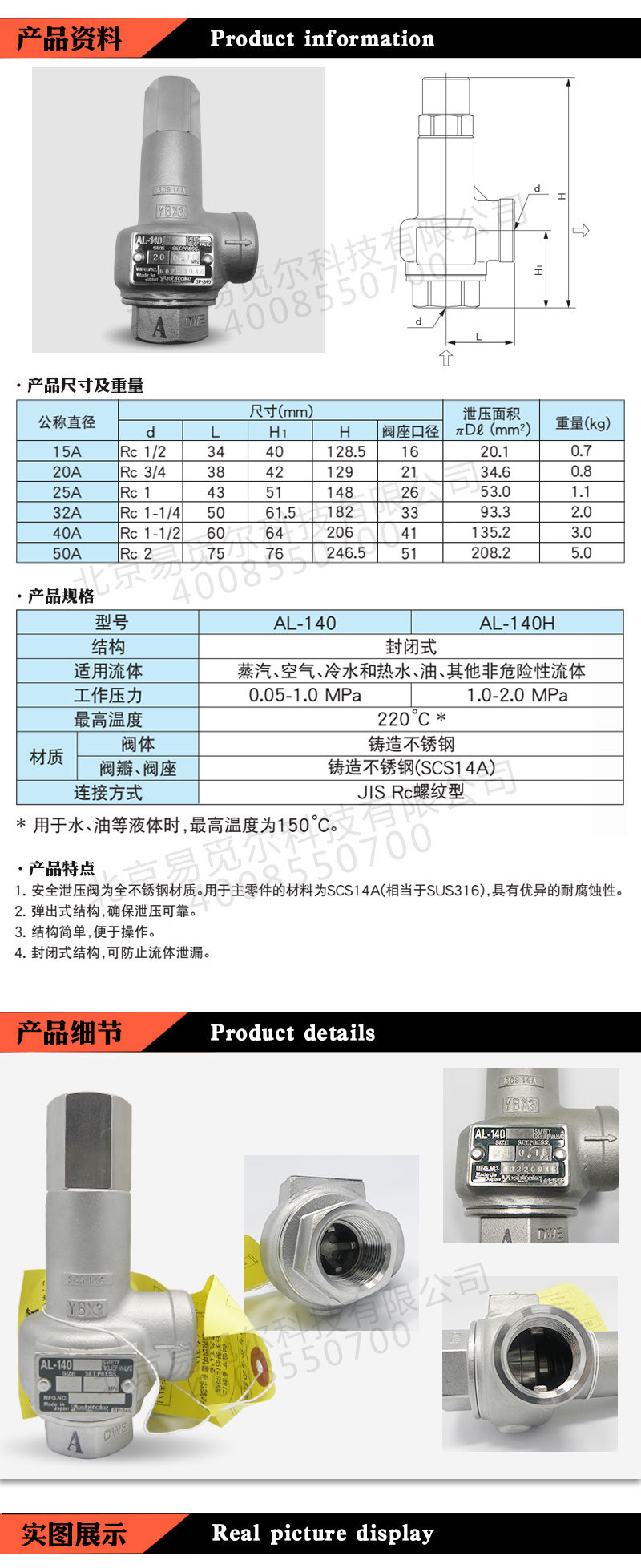 1.安全泄压阀为全不锈钢材质,用于主零件的材质为SCS14A(相当于SUS316),具有优异的耐腐蚀性。