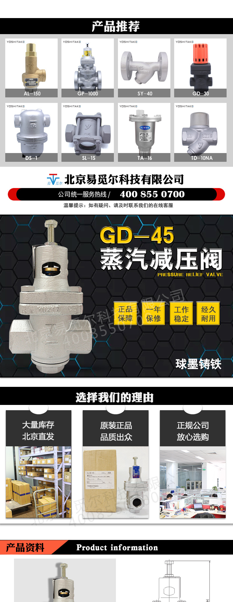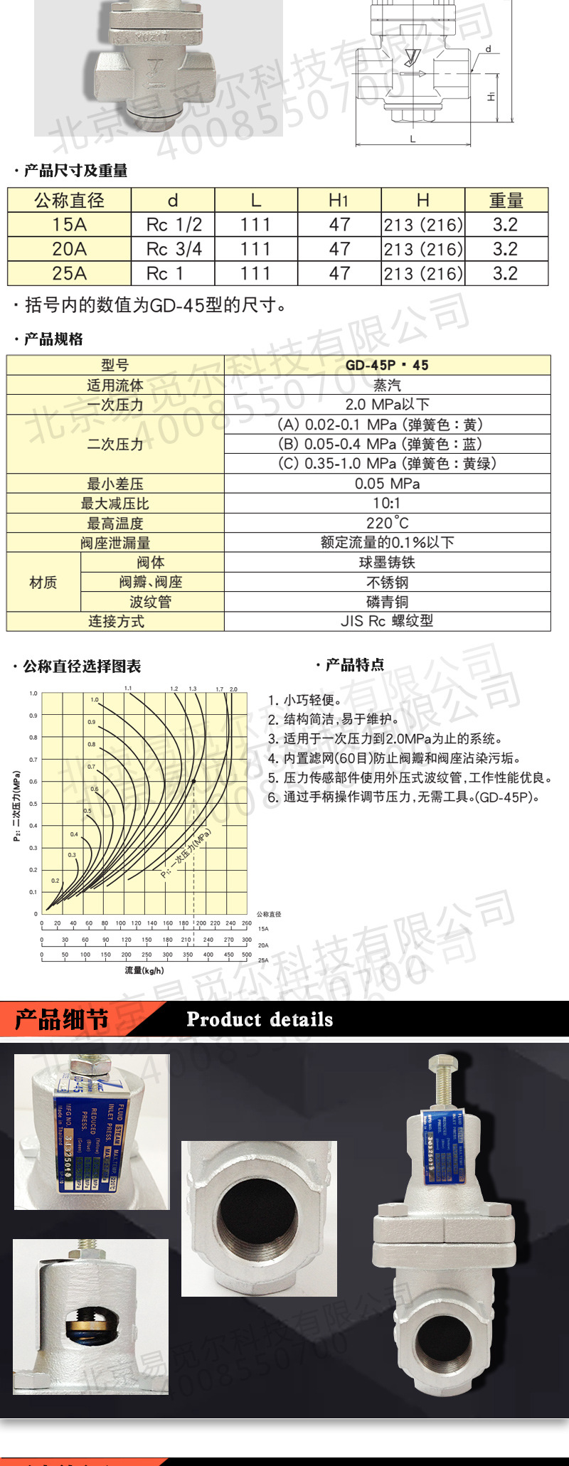 GD-45减压阀采用直动型,属小型轻量的蒸汽减压阀,内装过滤网避免由杂质引起的故障,容易安装及操作。