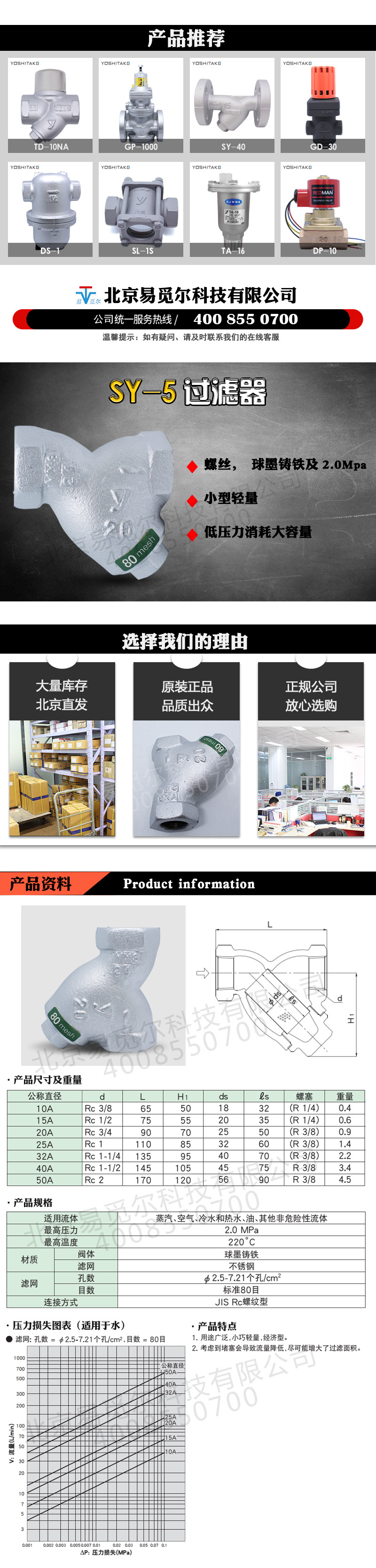 日本YOSHITAKE耀希达凯高温过滤器 SY-5 球墨铸铁丝扣蒸汽过滤器