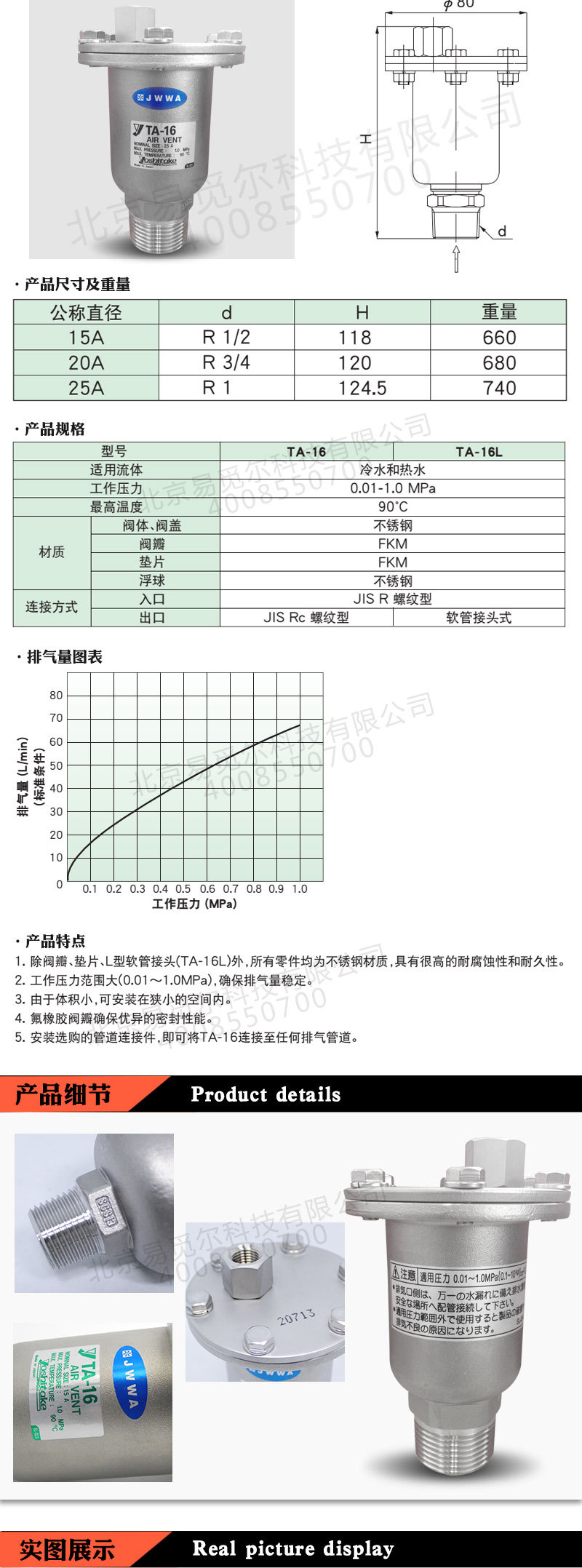 日本耀希达凯TA-16排气阀为不锈钢材质,具有压力范围大、耐久性能高、容量大、本体小、设计小巧,容易保养。