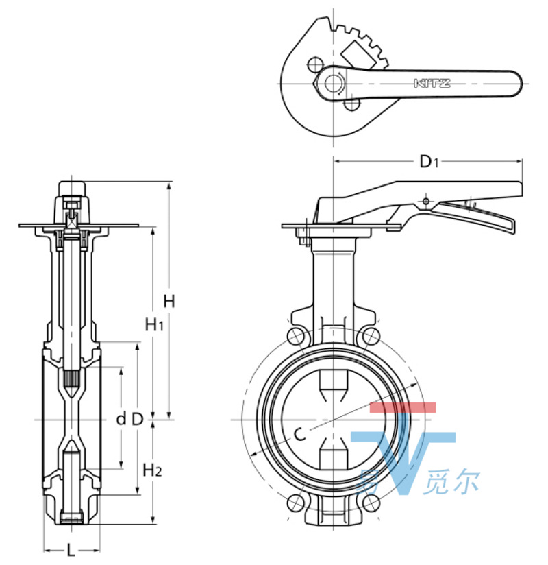 KITZ北泽10DJUE手柄蝶阀图片和尺寸规格图: