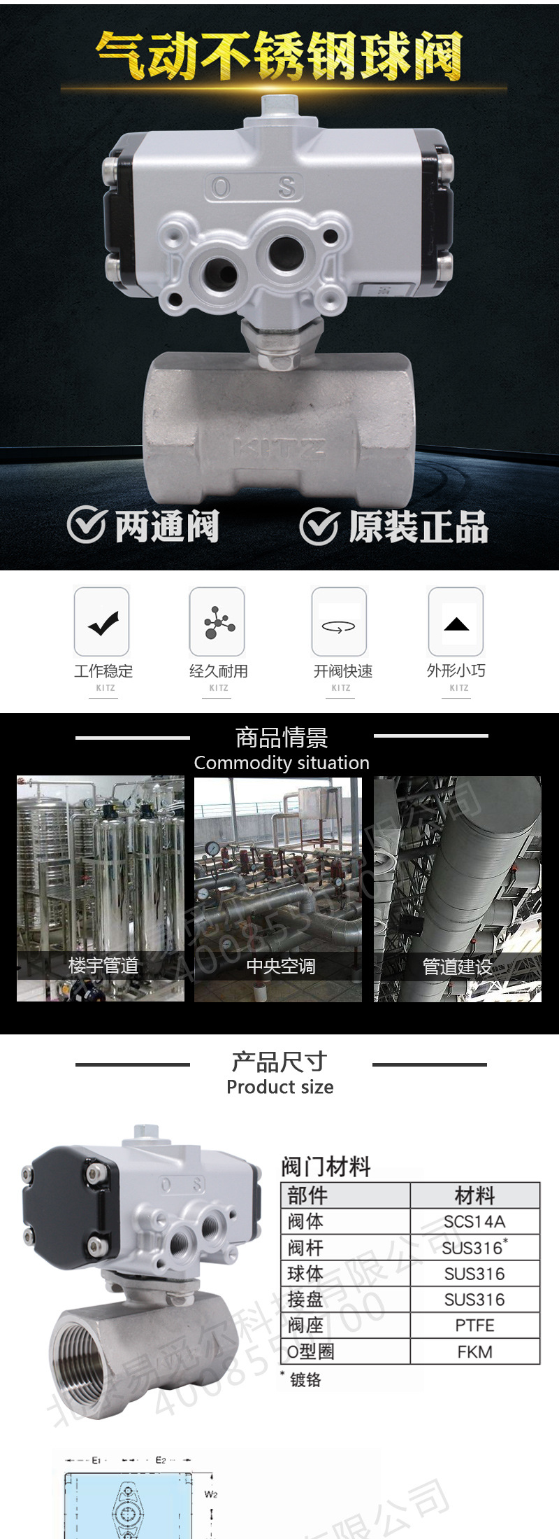 C-UTE气动不锈钢球阀是日本KITZ北泽生产的气动不锈钢两通球阀,该球阀具有较强的抗腐蚀性和耐久性。