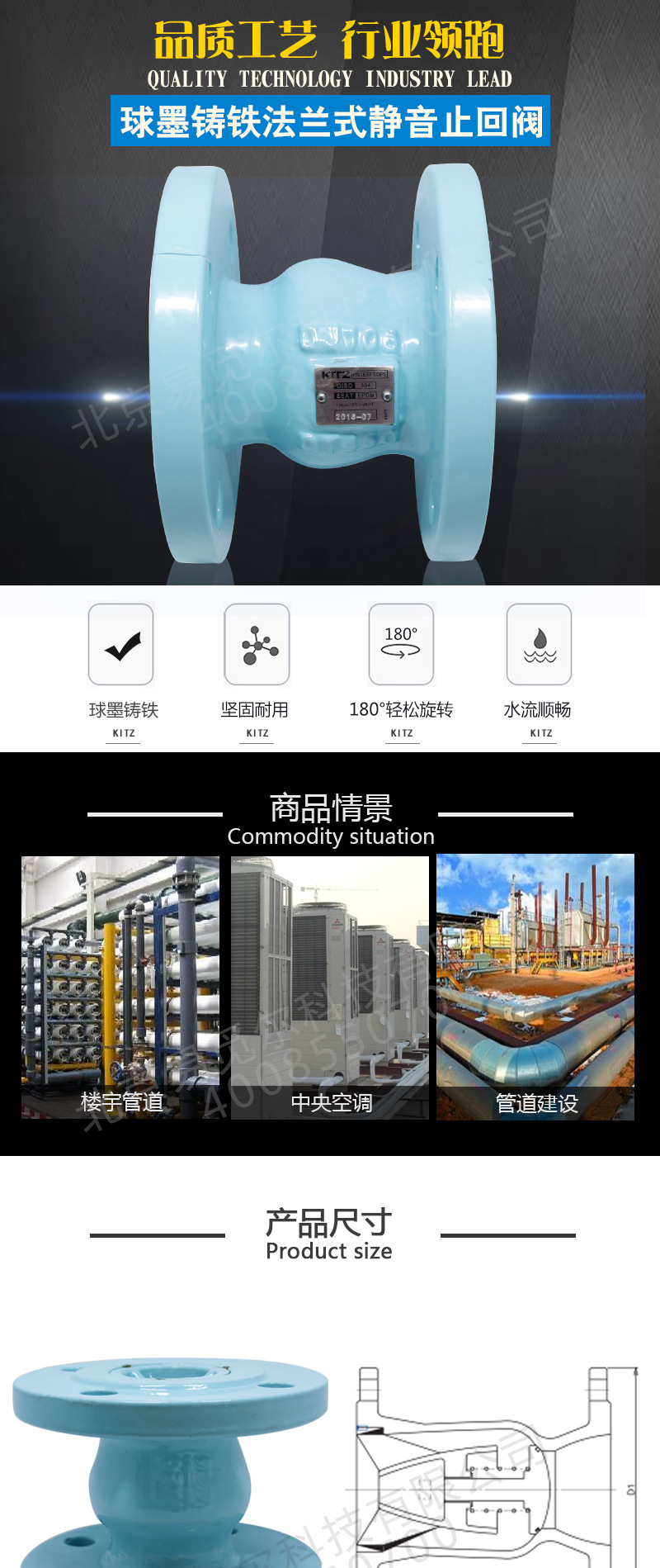日本北泽KITZ开滋PN16SFSOPE止回阀 球墨铸铁法兰式静音止回阀