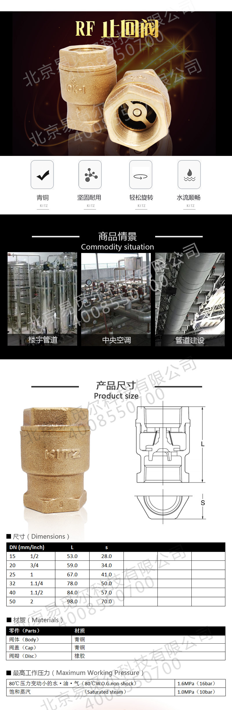 日本北泽 RF青铜立式止回阀 升降式KITZ止回阀 开滋阀门