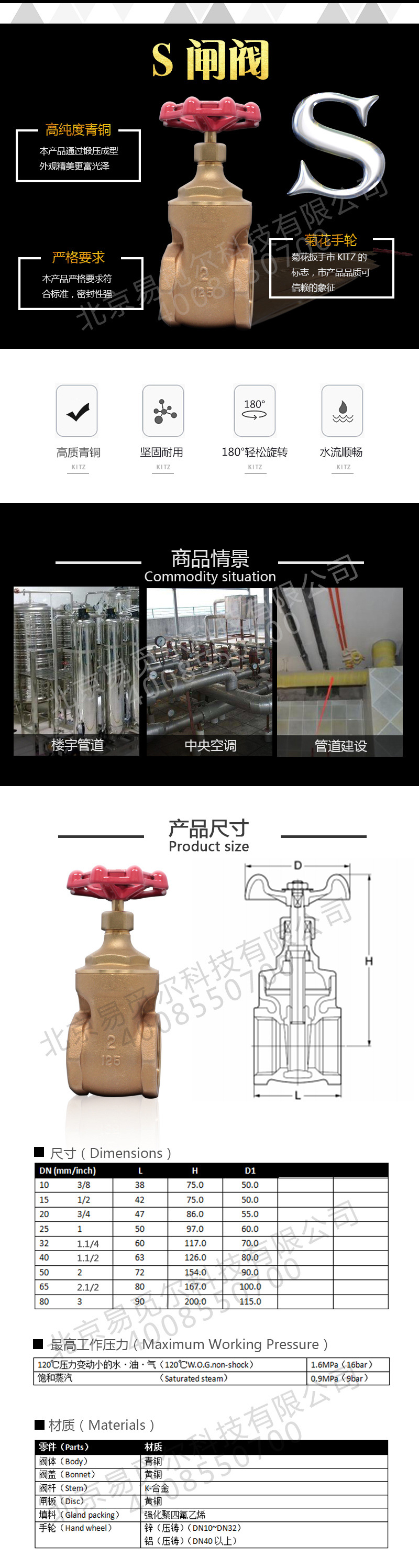 日本北泽KITZ青铜丝扣闸阀S技术参数: