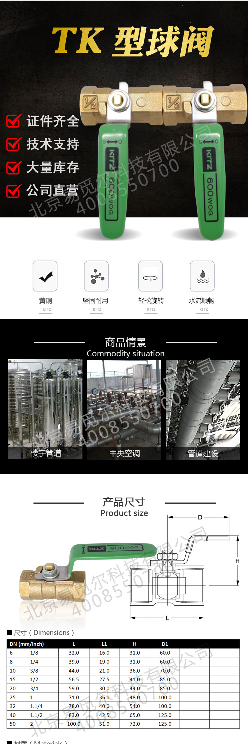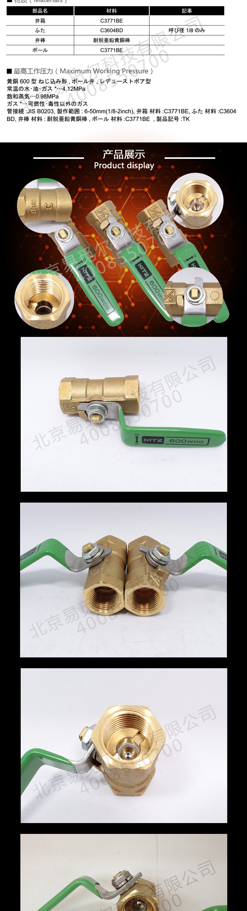 TK600铜球阀是日本KITZ北泽生产的一片式铜球心阀,该球阀加工精度高,泄漏率低。
