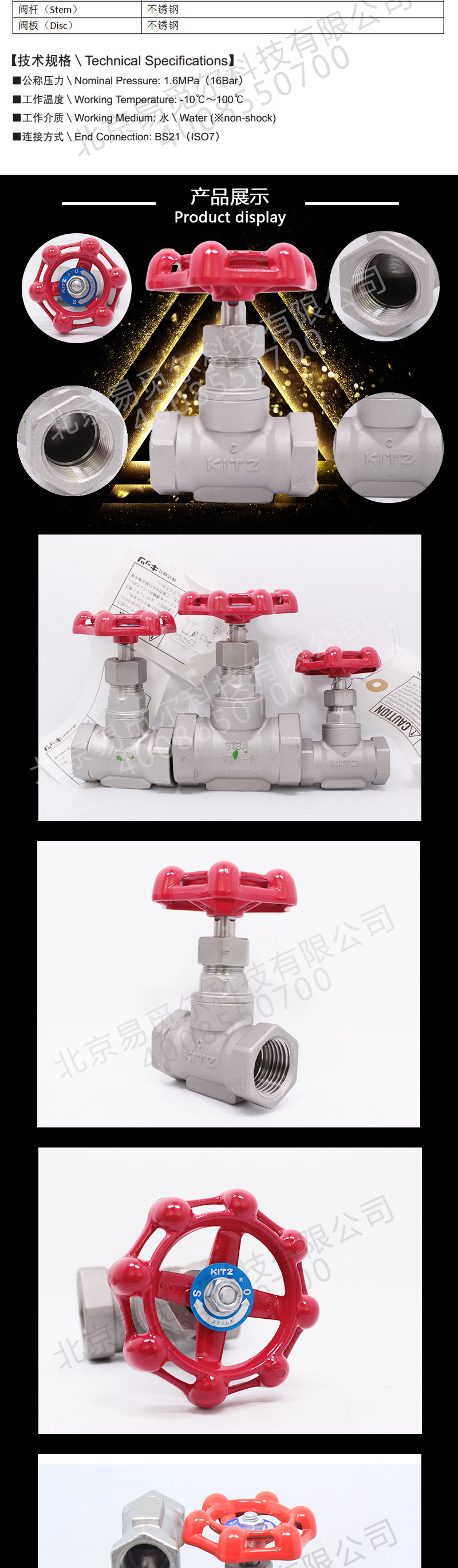 产品备注:日本KITZ阀门 销售单位:KITZ阀门 名称:不锈钢丝扣截止阀(明杆式) 压力等级:1.6MPa KITZ代号:UCL